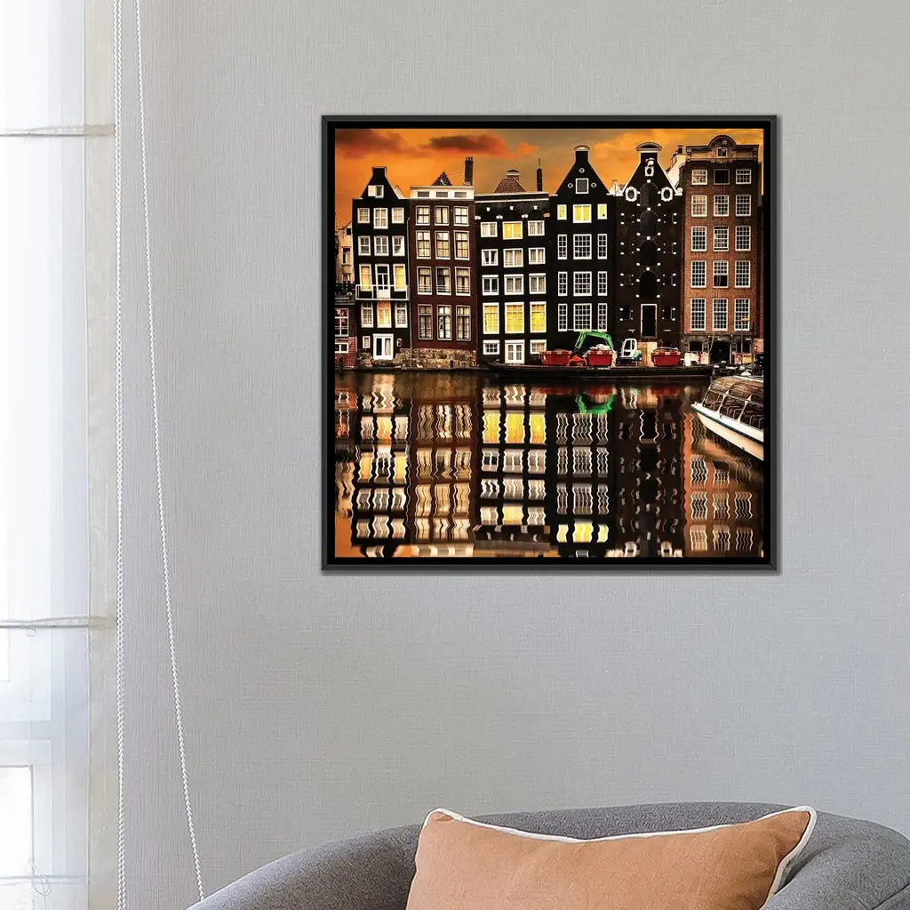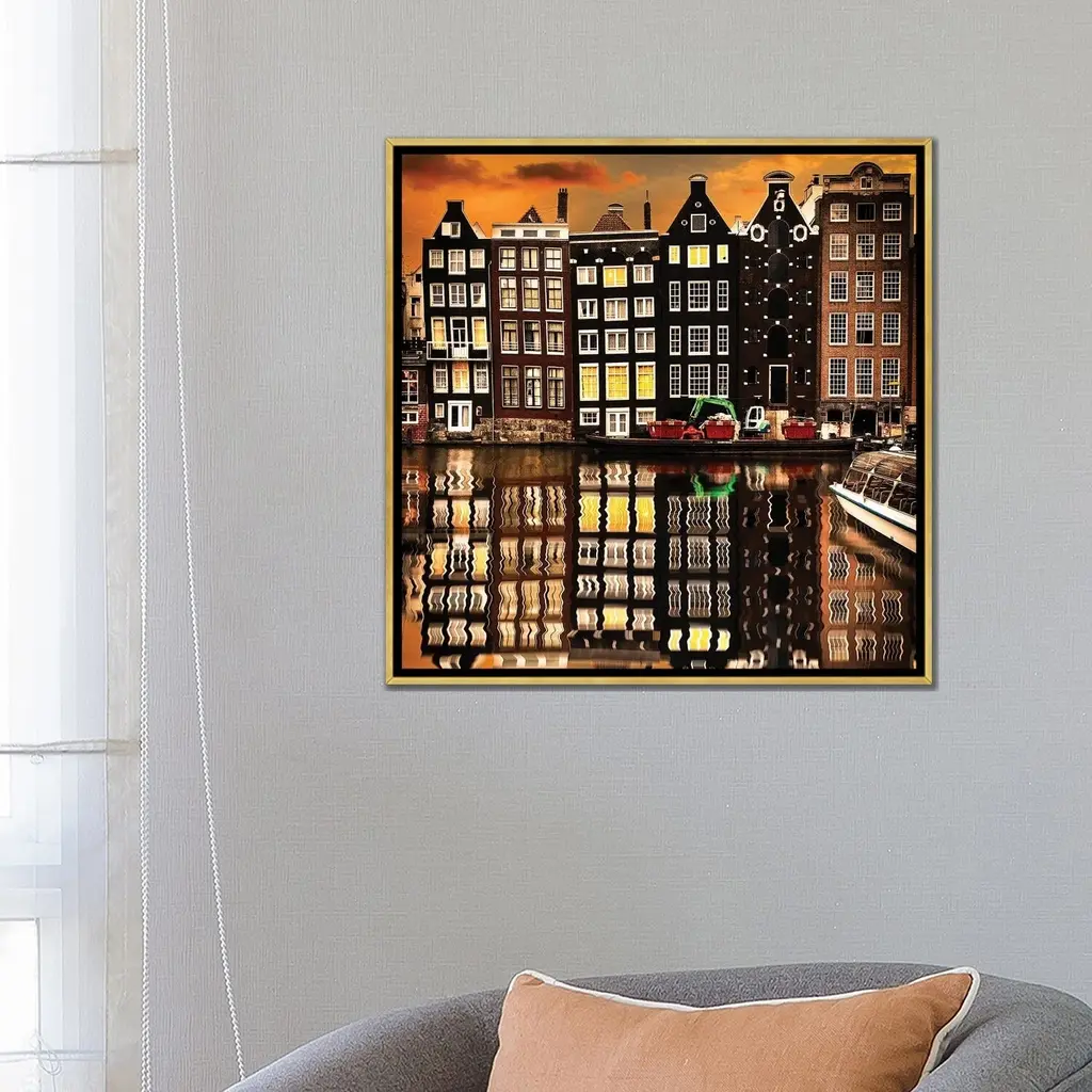 Icanvas "Amsterdam Ii" By Enzo Romano Framed Canvas Print - Gold - 18x18