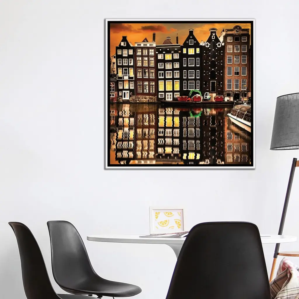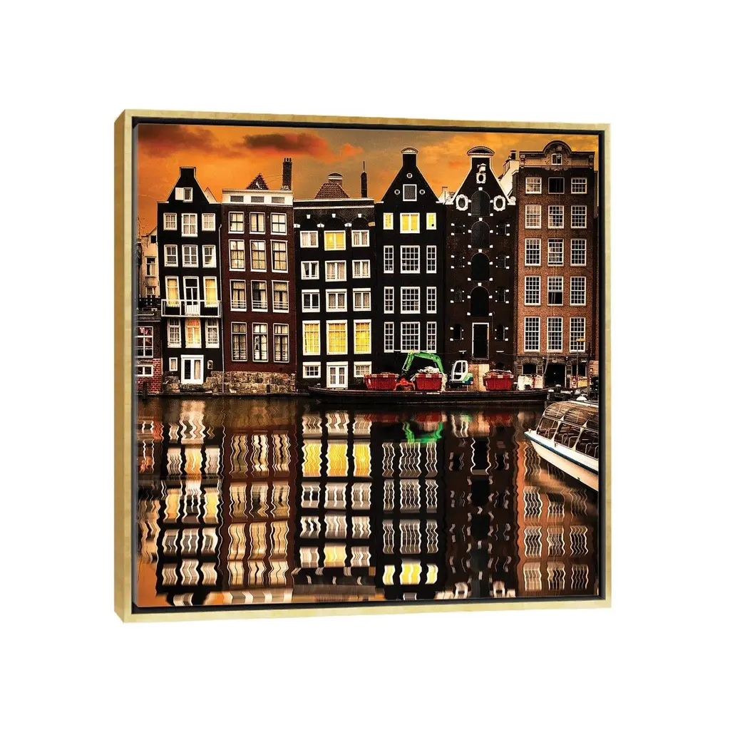 Icanvas "Amsterdam Ii" By Enzo Romano Framed Canvas Print - Gold - 37x37