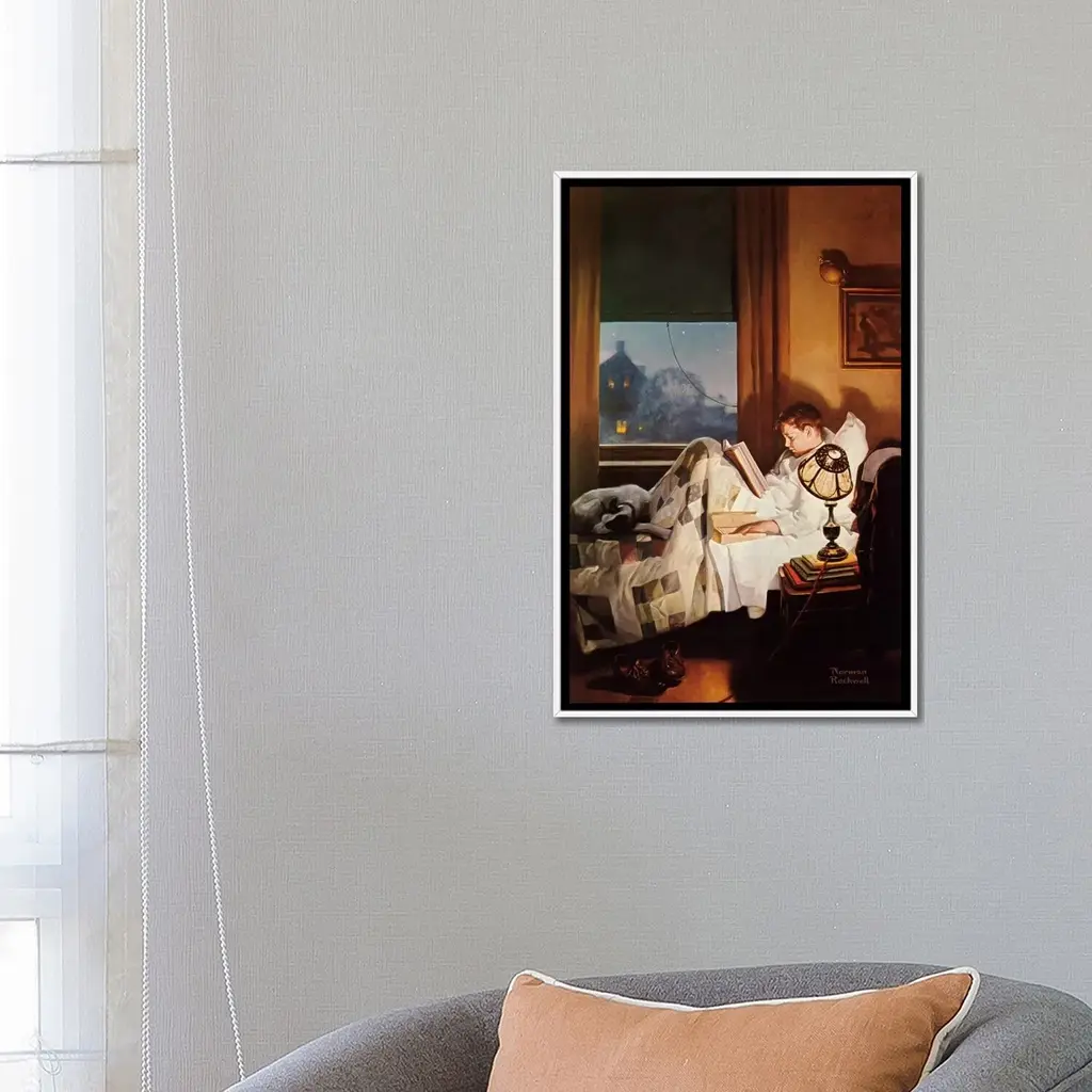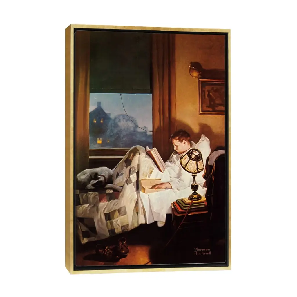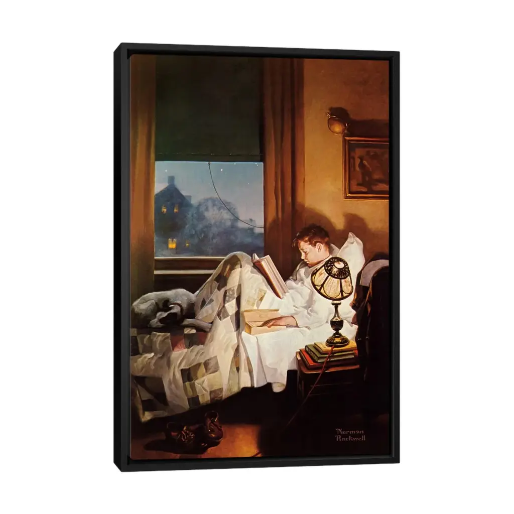 Icanvas "And Every Lad May Be Aladdin" By Norman Rockwell Framed Canvas Print - Black - 40x26