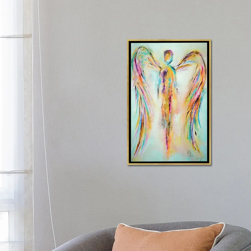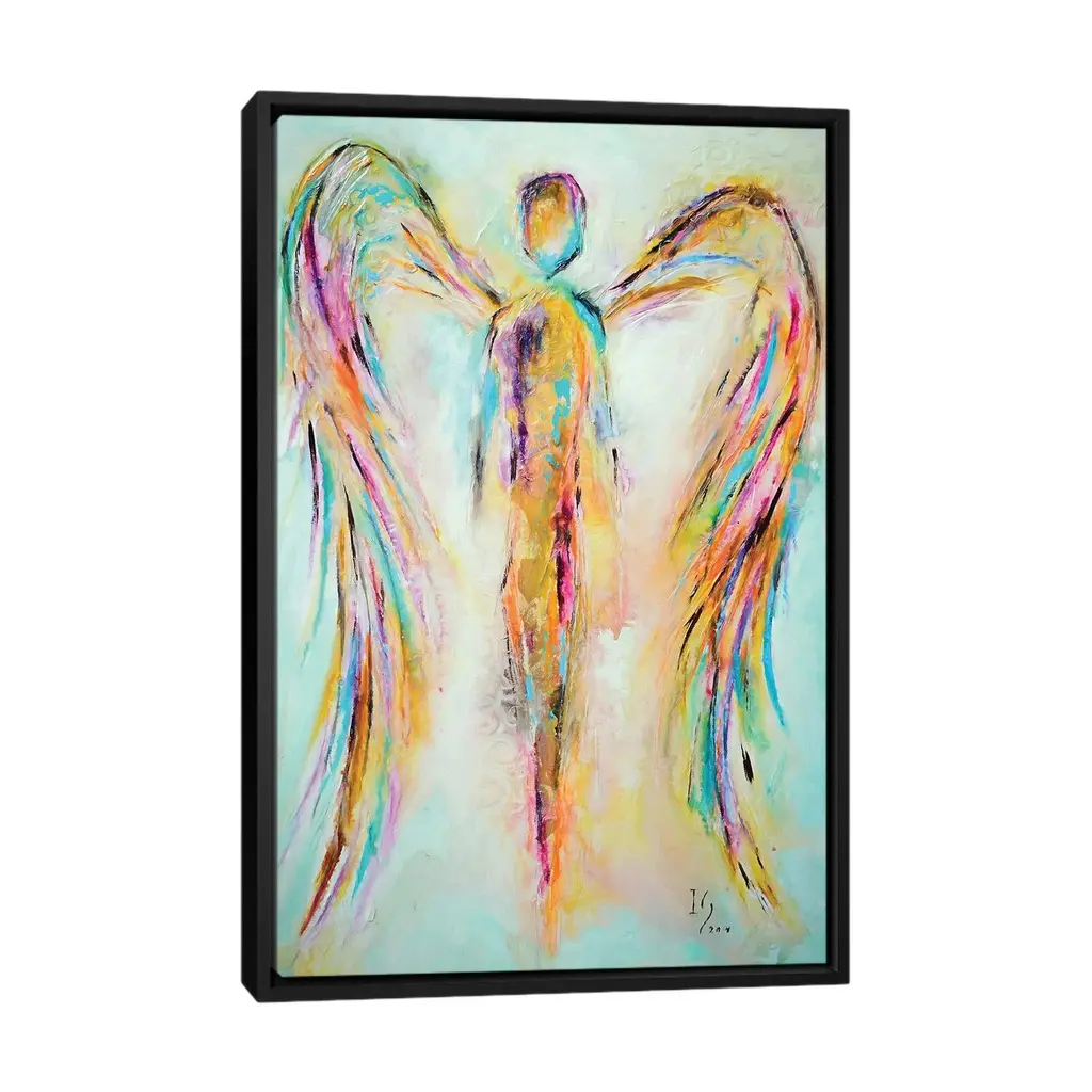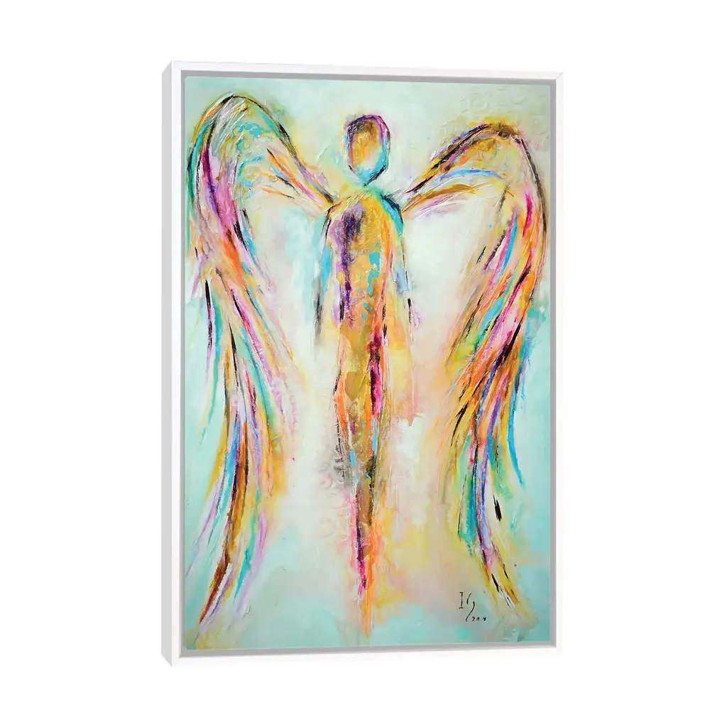 Icanvas "Angel In Heaven" By Ivan Guaderrama Framed Canvas Print - White - 40x26