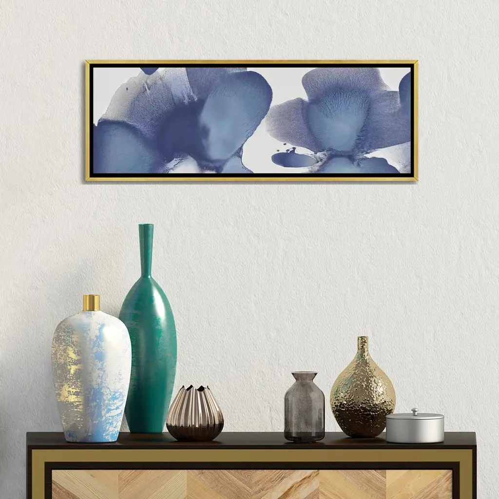 Icanvas "Animate Indigo I" By Hannah Carlson Framed Canvas Print - 12x36 - Gold