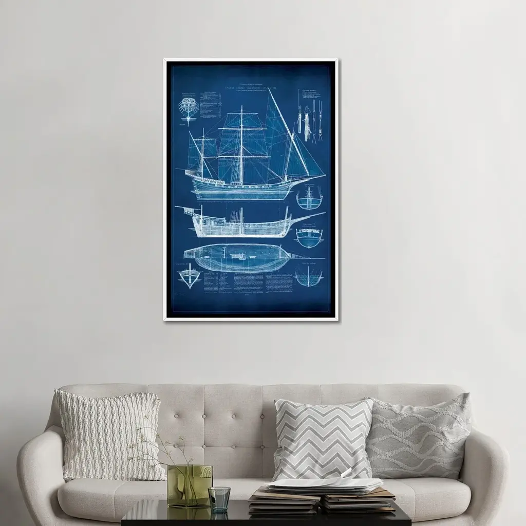 Icanvas "Antique Ship Blueprint I" By Vision Studio Framed Canvas Print - Black - 26x18