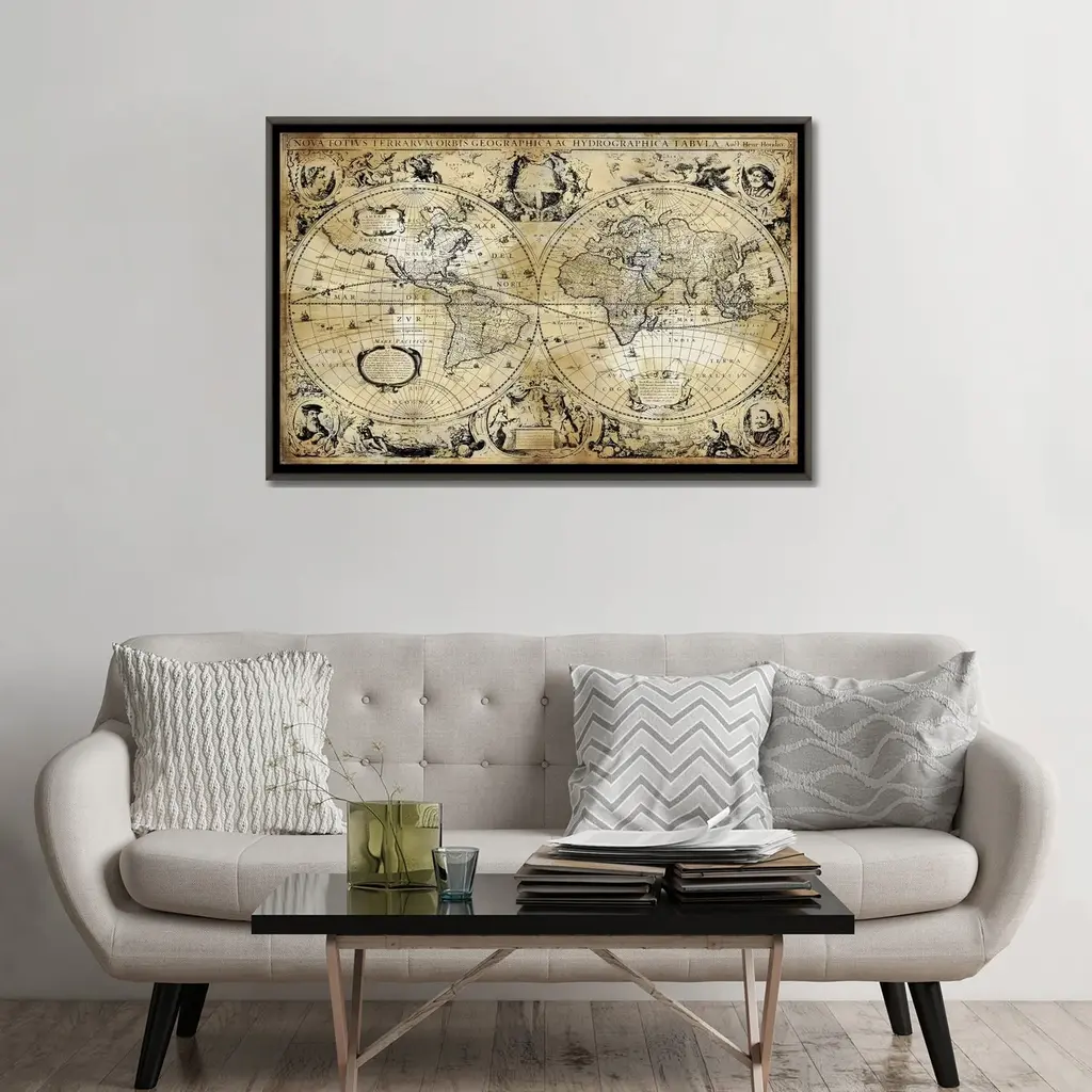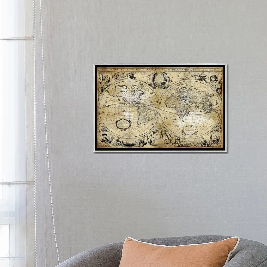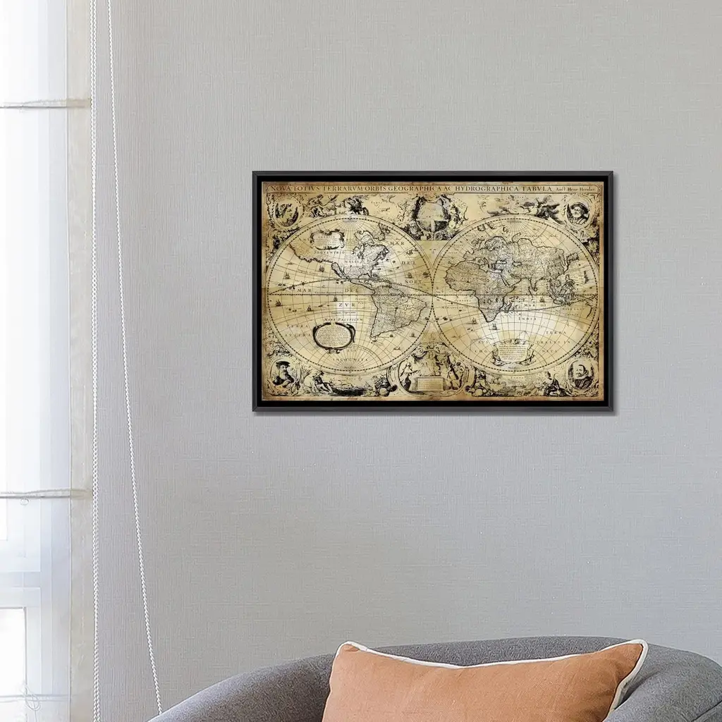Icanvas "Antique World Map" By Russell Brennan Framed - Ebony - 26x40