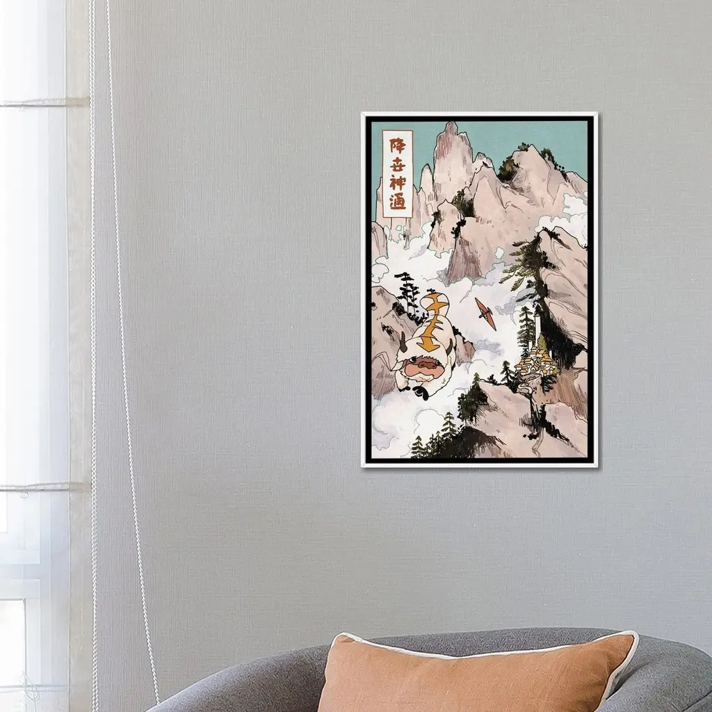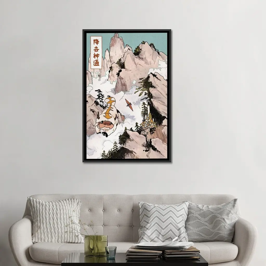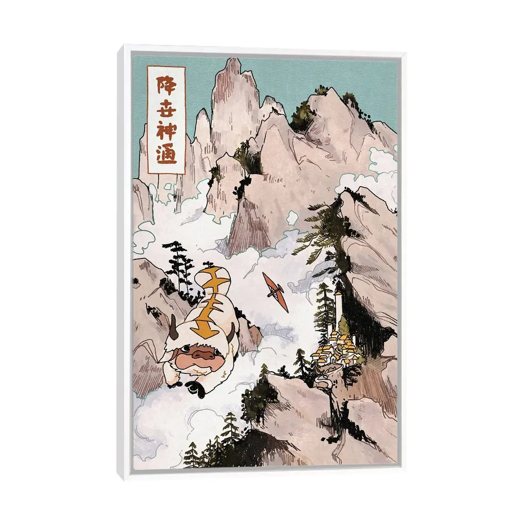 Icanvas "Appa In The Mountains - Avatar - The Last Airbender" By Lucy Michelle Framed Canvas Print - Gold - 48x32