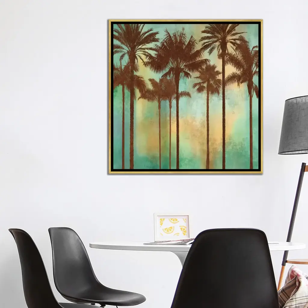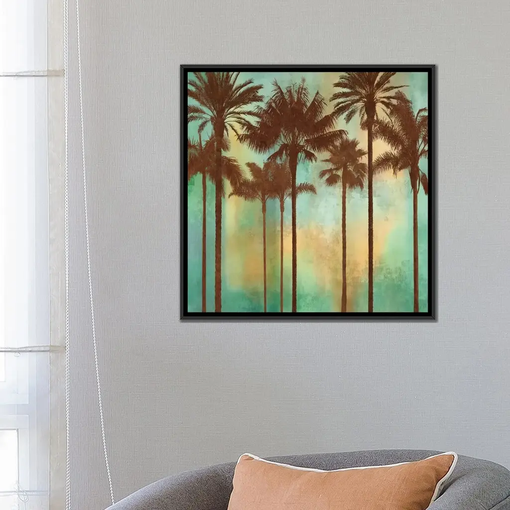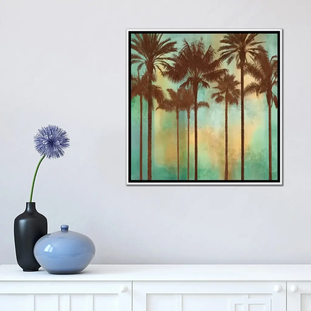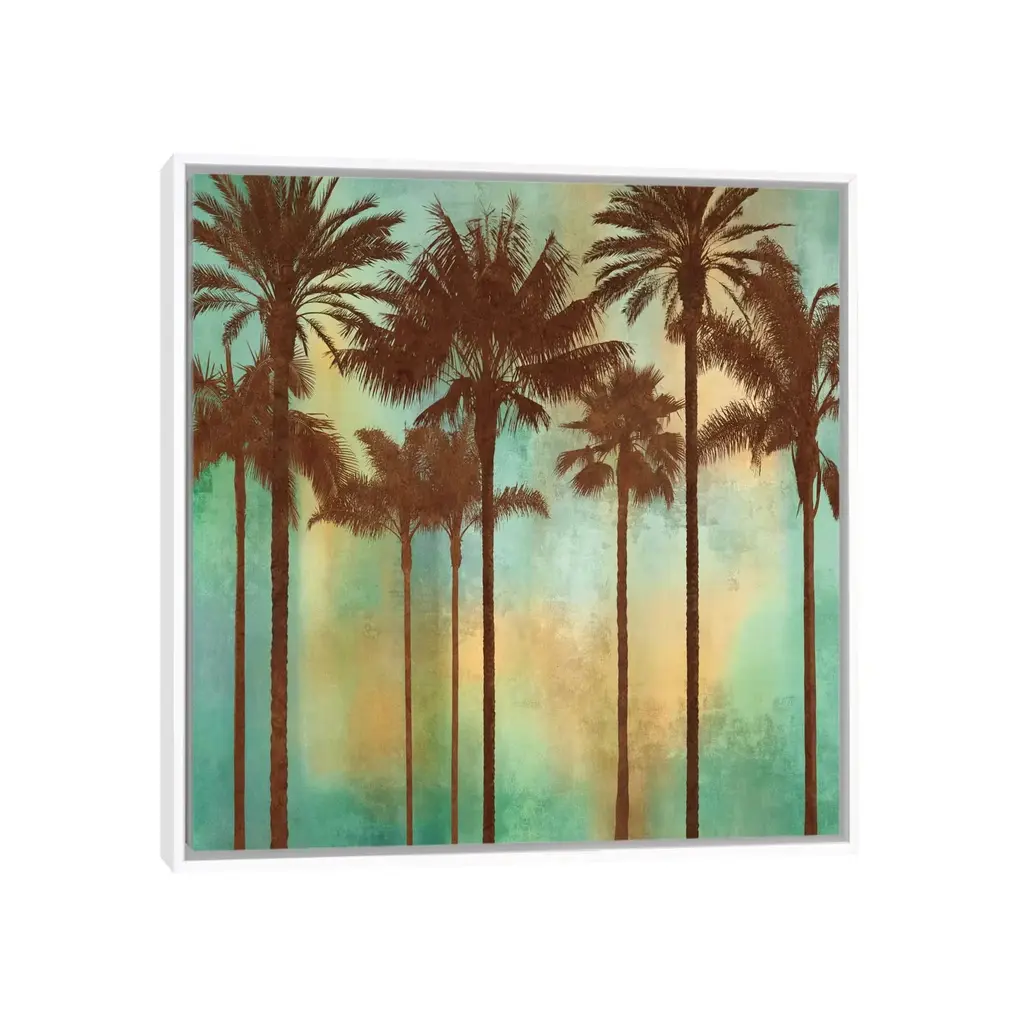Icanvas "Aqua Palms Ii" By John Seba Framed Canvas Print - White - 18x18