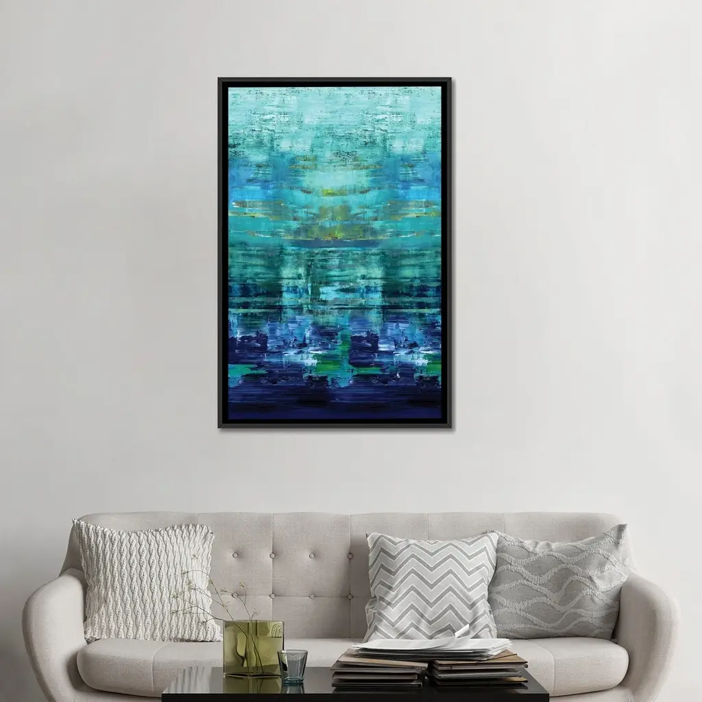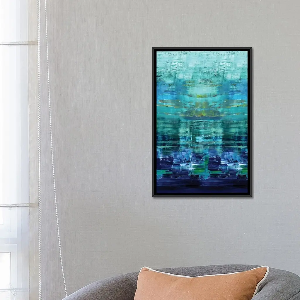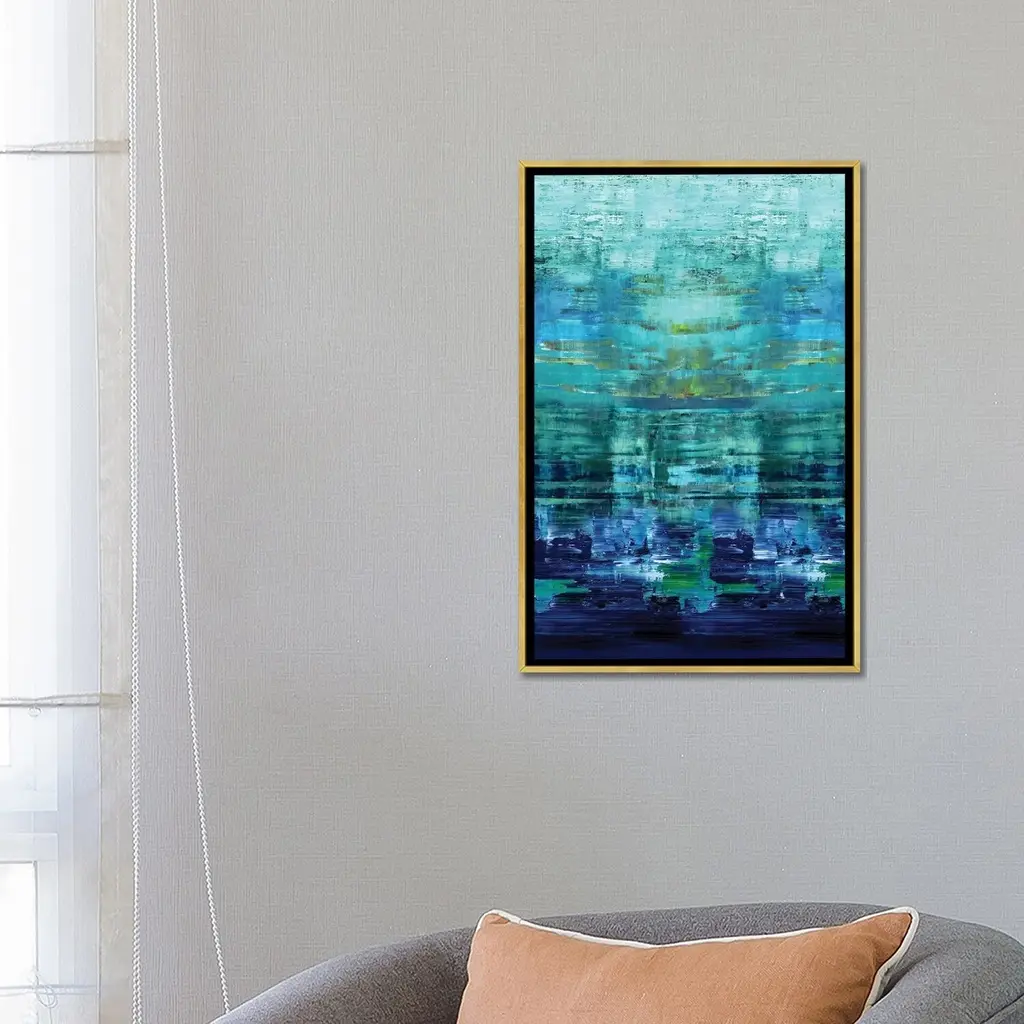 Icanvas "Aqua Reflections" By Allie Corbin Framed Canvas Print - Gold - 48x32