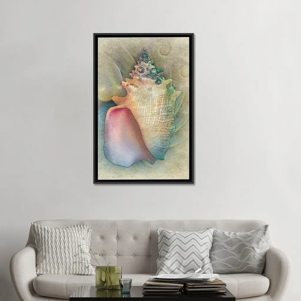 Elevate your space with the iCanvas "Aquatica IV" Framed Canvas Print by Steve Hunziker. This high-quality artwork is expertly crafted in the USA using artist-grade canvas, giving it the texture and look of a fine-art painting. The canvas is stretched and stapled over sturdy North American pine-wood bars in a Gallery Wrap style, commonly used in art galleries. Mounted to an elegant 2-inch thick hardwood frame, the art appears to float within the frame, creating a visually stunning effect. With fade-resistant archival inks, this print guarantees vibrant colors that will remain vivid for years to come. Bring contemporary style and impeccable detail to your space with this exceptional piece.Features: