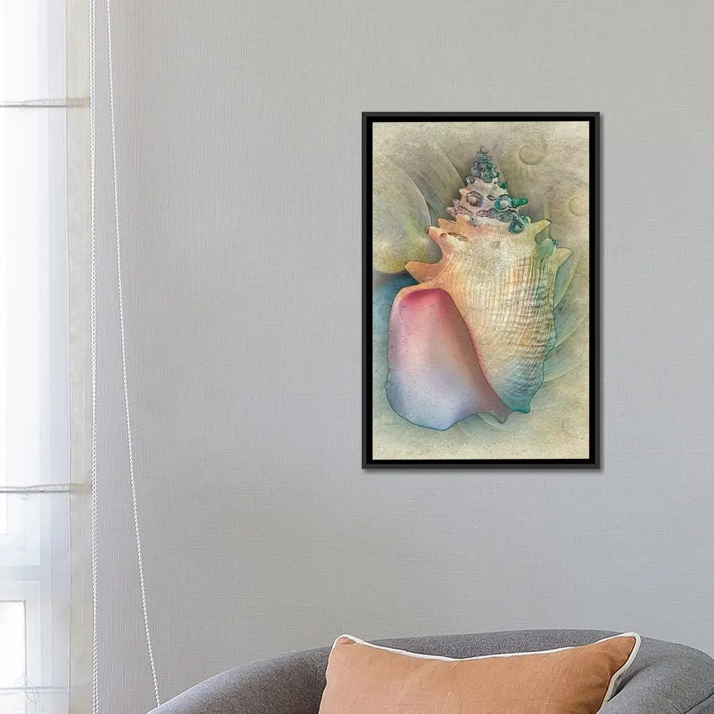 Elevate your space with the iCanvas "Aquatica IV" Framed Canvas Print by Steve Hunziker. This high-quality artwork is expertly crafted in the USA using artist-grade canvas, giving it the texture and look of a fine-art painting. The canvas is stretched and stapled over sturdy North American pine-wood bars in a Gallery Wrap style, commonly used in art galleries. Mounted to an elegant 2-inch thick hardwood frame, the art appears to float within the frame, creating a visually stunning effect. With fade-resistant archival inks, this print guarantees vibrant colors that will remain vivid for years to come. Bring contemporary style and impeccable detail to your space with this exceptional piece.Features: