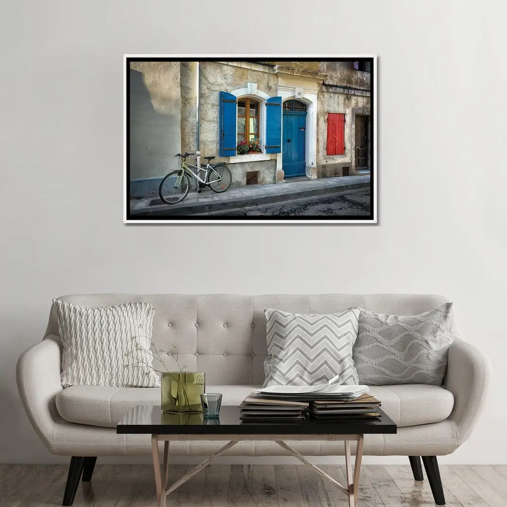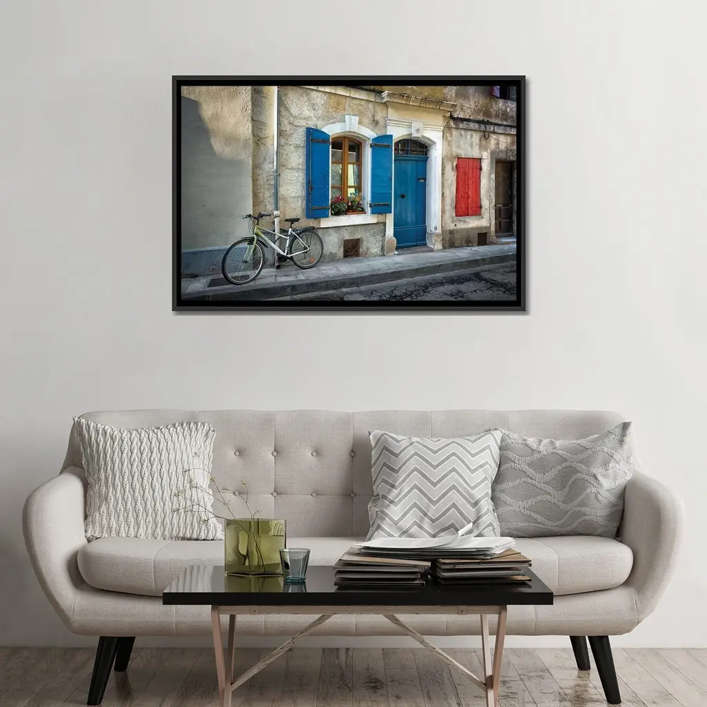 Icanvas "Arles Bicycle" By Marco Carmassi Framed Canvas Print - Black - 32x48