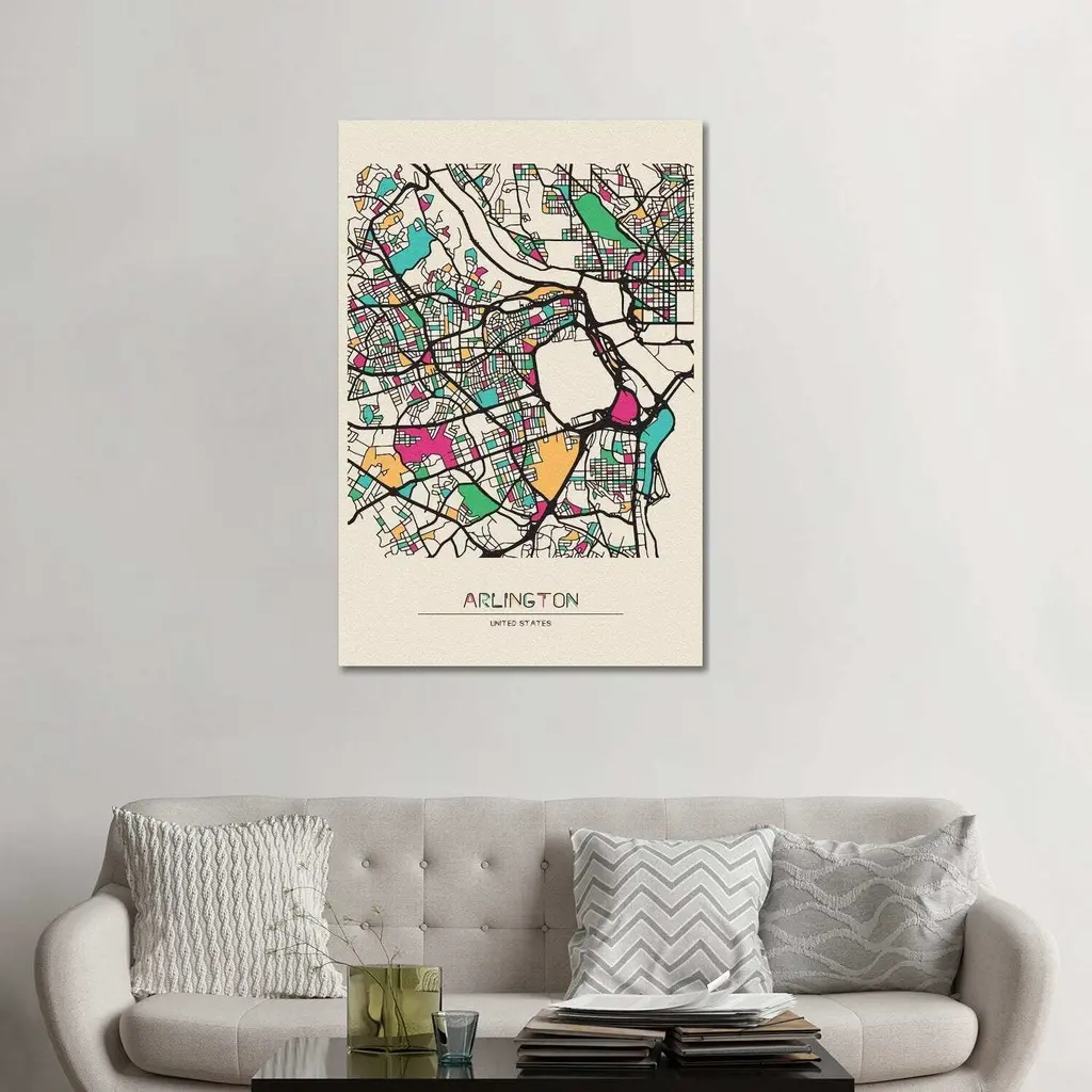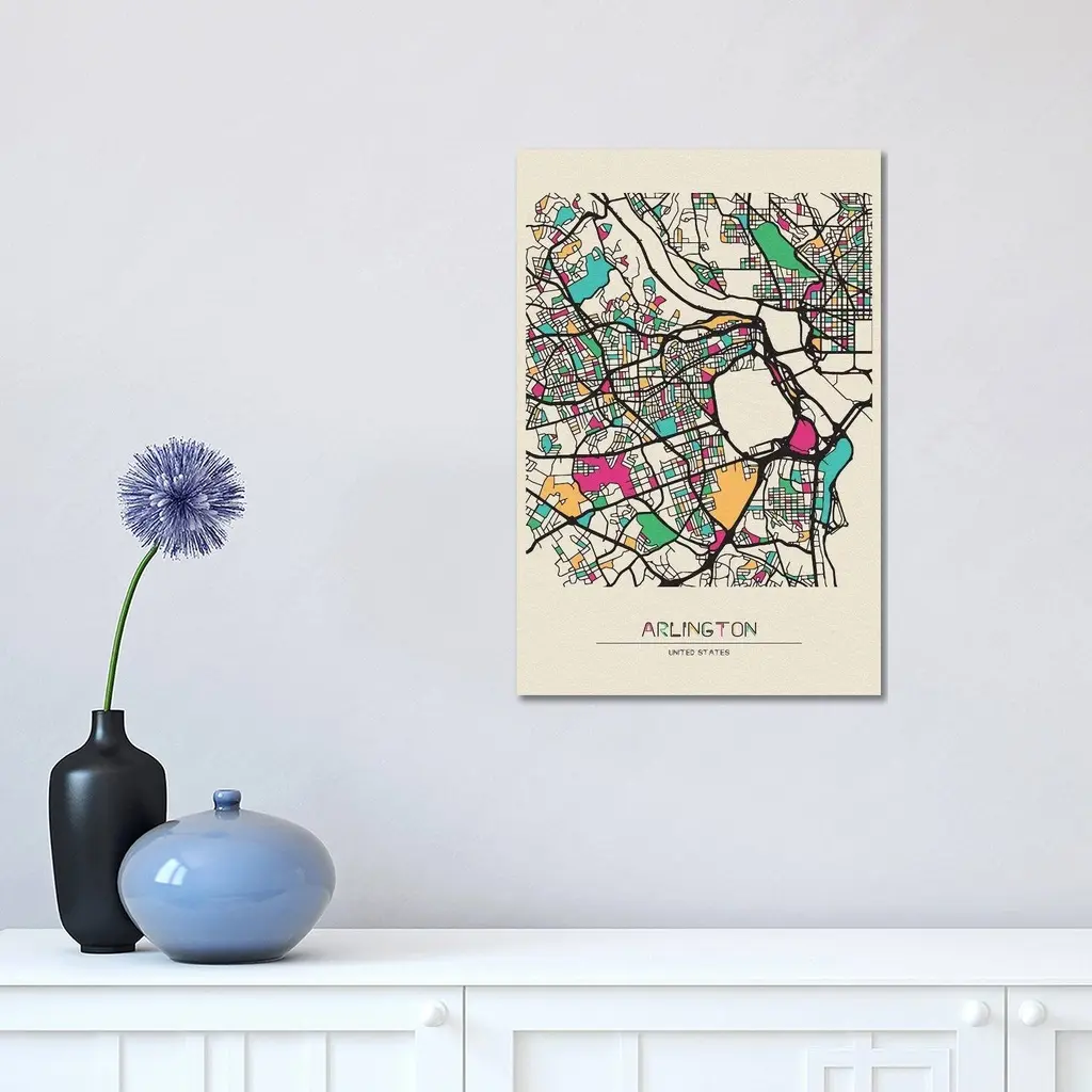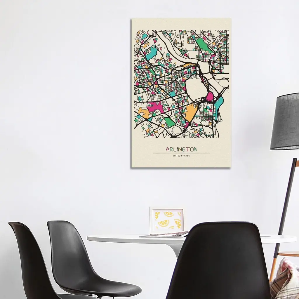 Icanvas "Arlington County, Virginia Map" By Ayse Deniz Akerman Canvas Print - 12x8x0.75