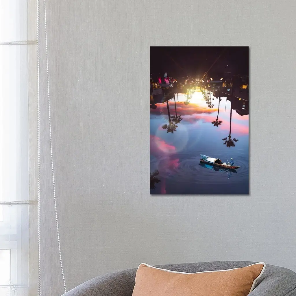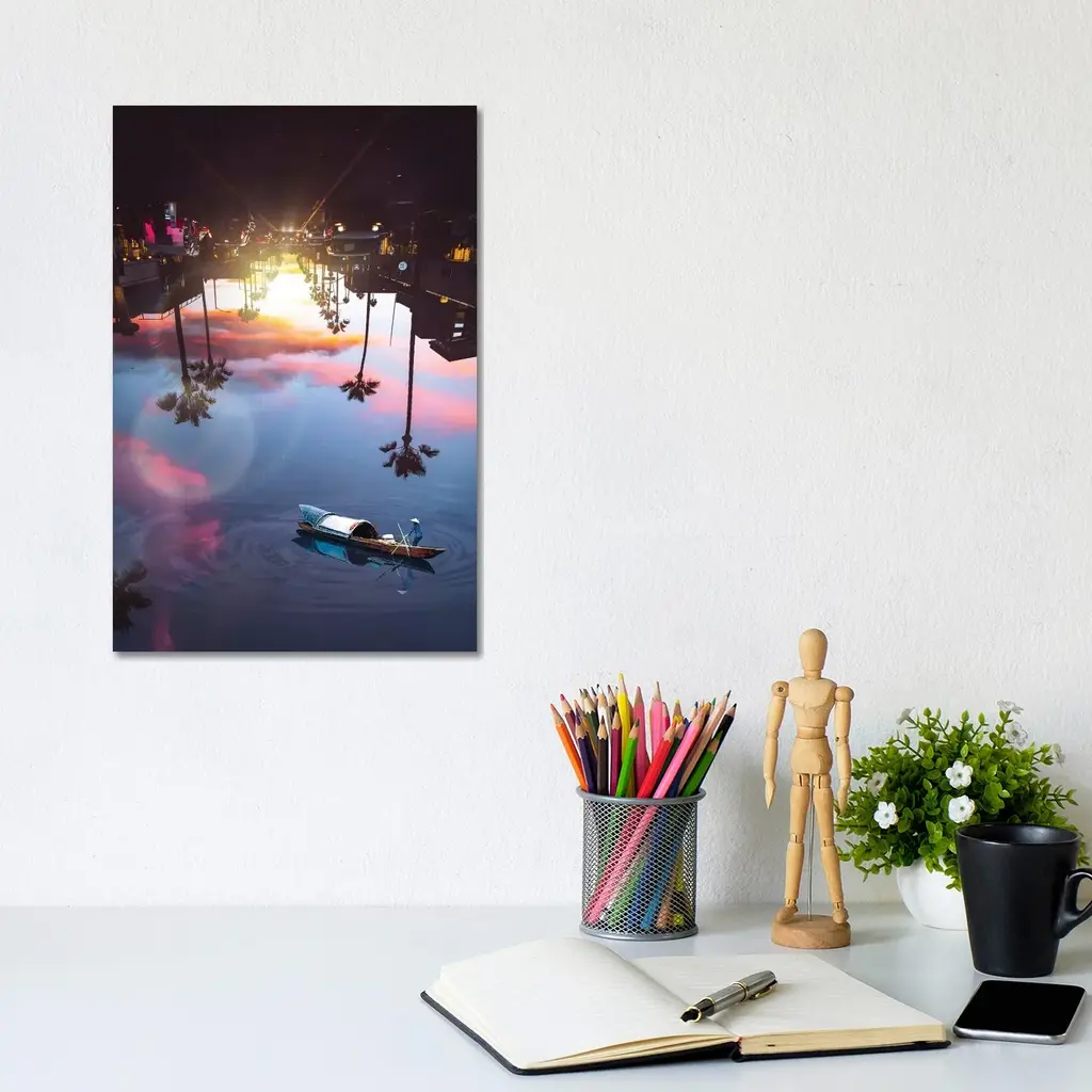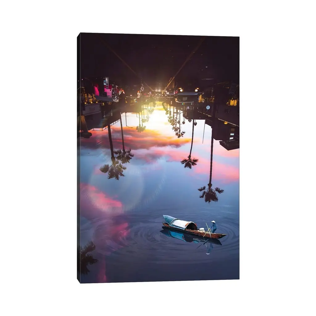 Icanvas "Asian Boat On River Sky And Inception Landscape" By Gen Z Canvas Print - 18x12x1.5