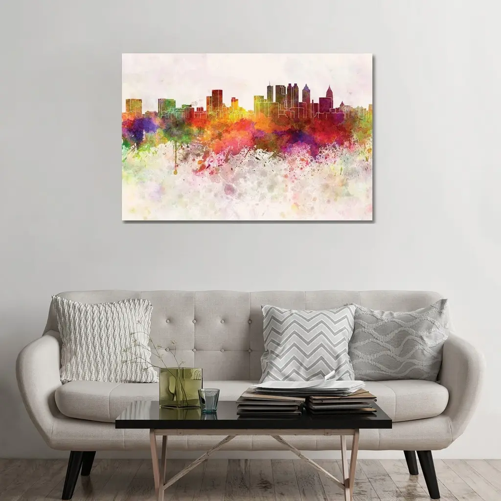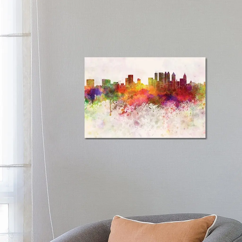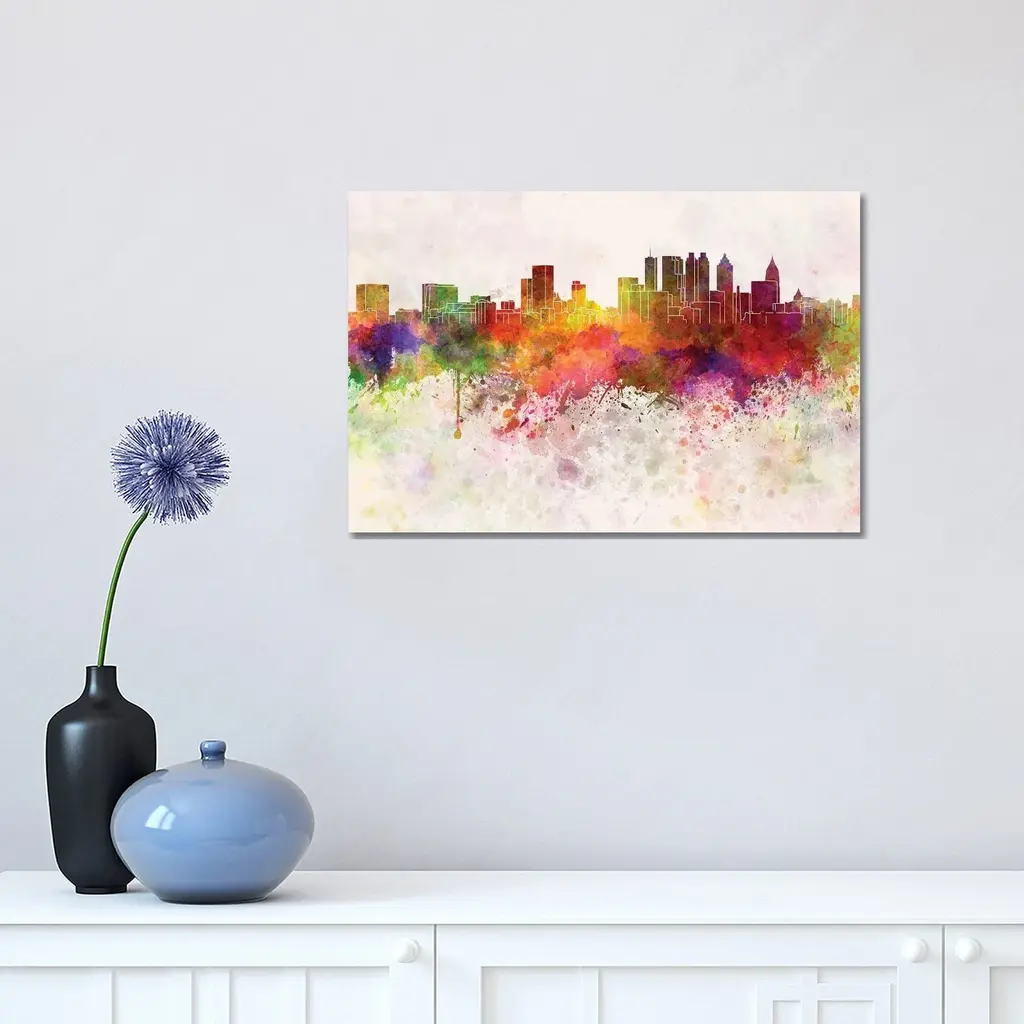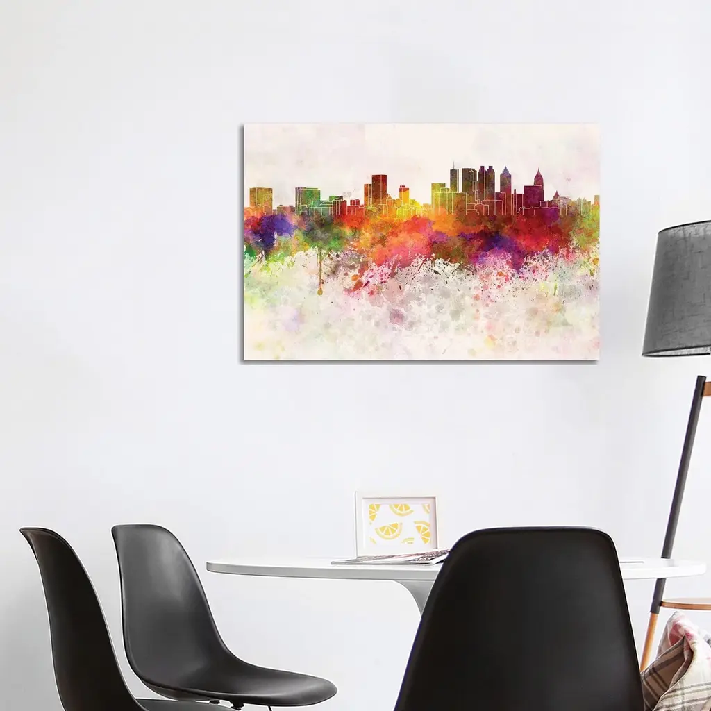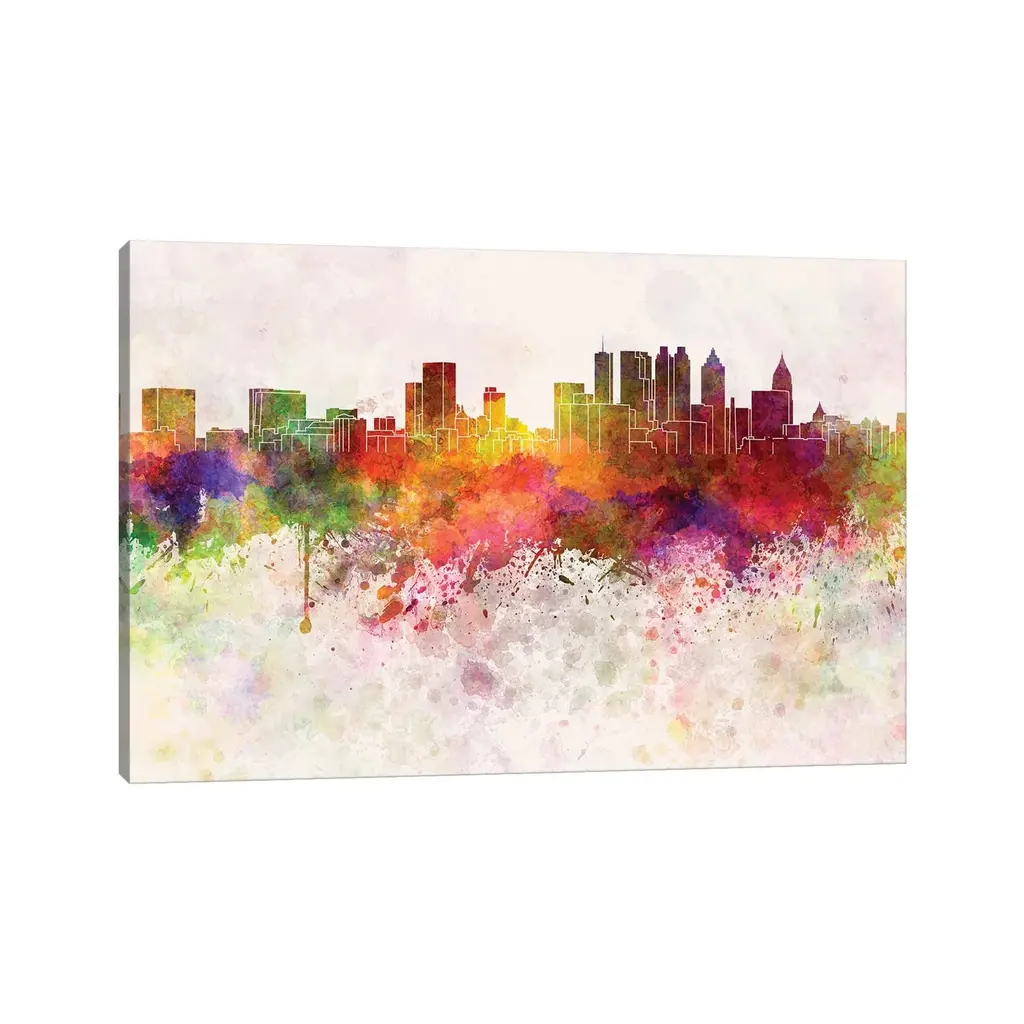 Icanvas "Atlanta Skyline In Watercolor Background" By Paul Rommer Canvas Print - 8X12x0.75