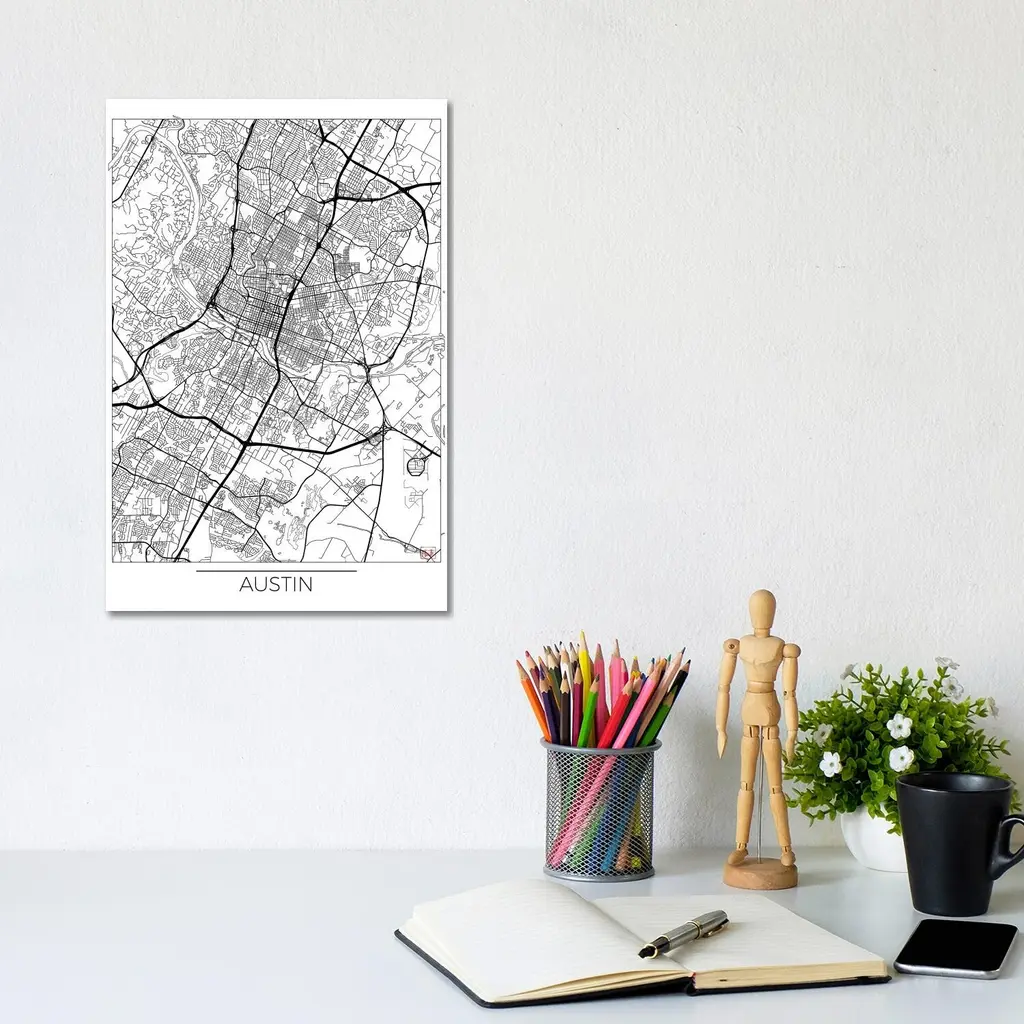 Icanvas "Austin Minimal Urban Blueprint Map" By Hubert Roguski Canvas Print - 12x8x0.75