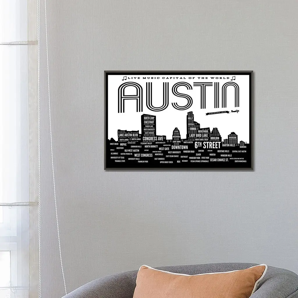Icanvas "Austin Neighborhoods" By Benton Park Prints Framed - Charcoal - 26x40