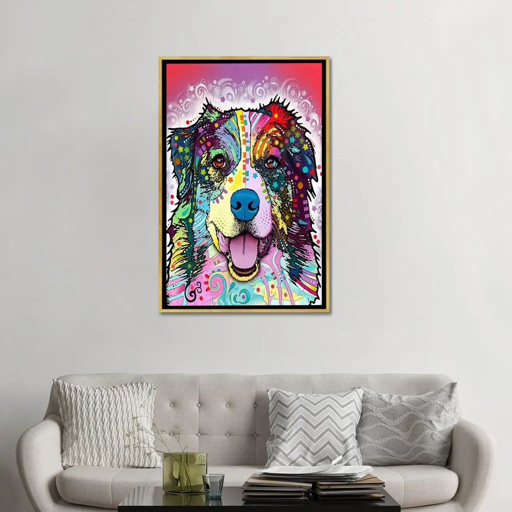 Icanvas "Australian Shepherd" By Dean Russo Framed Canvas Print - Black - 40x26