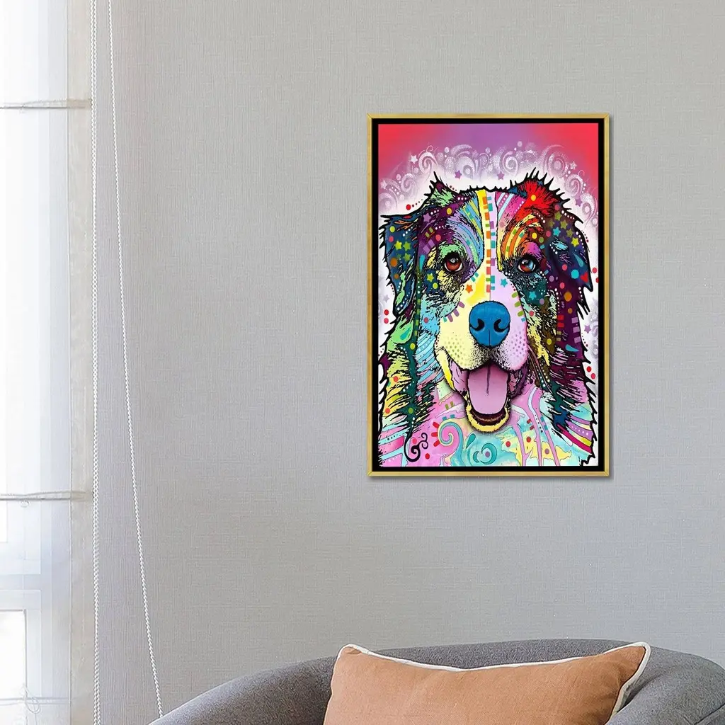 Icanvas "Australian Shepherd" By Dean Russo Framed Canvas Print - Gold - 40x26