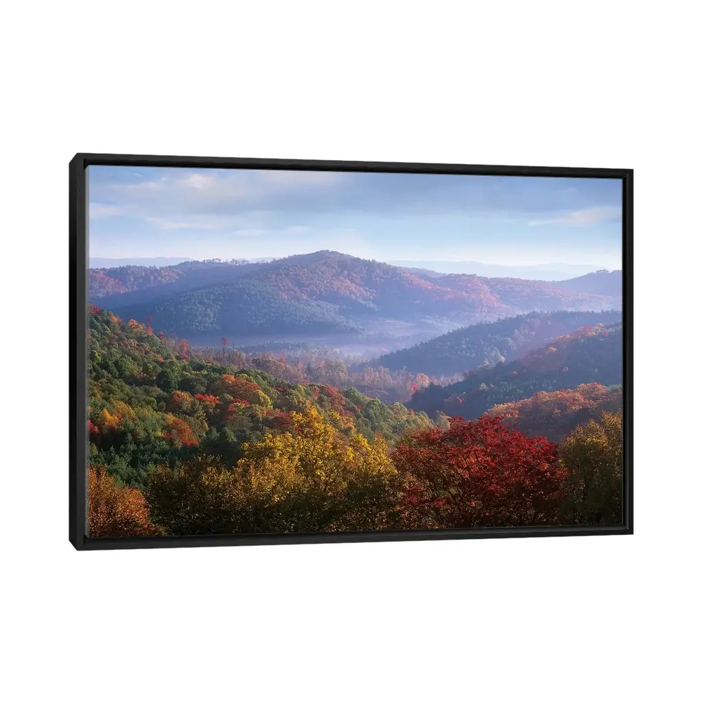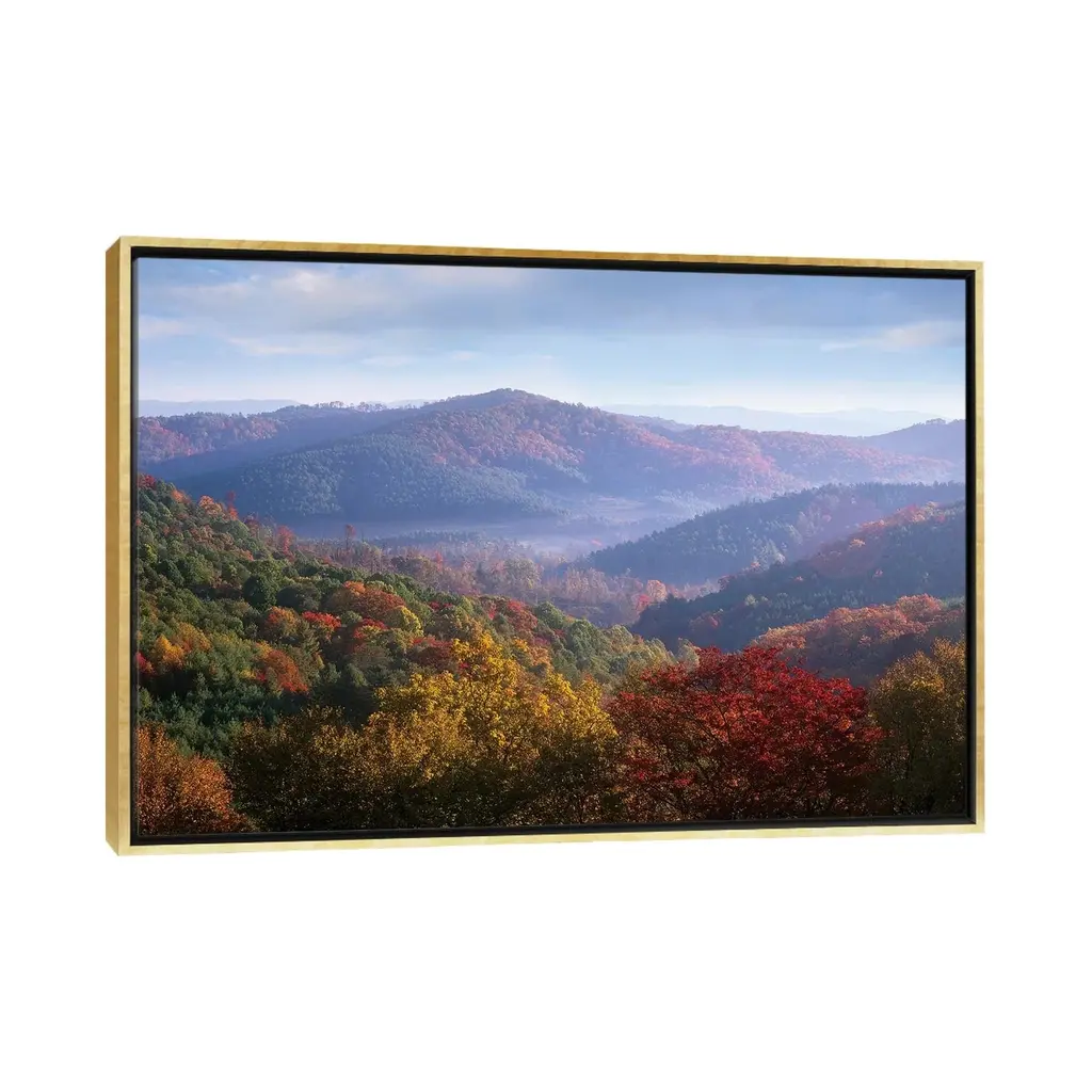 Icanvas "Autumn Deciduous Forest From The Blue Ridge Parkway, North Carolina" By Tim Fitzharris Framed Canvas Print - Gold - 18x26