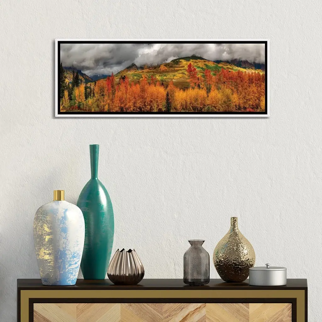 Icanvas "Autumn Scene At Crested Butte, Colorado" By Olena Art Framed Canvas Print - 12x36 - White