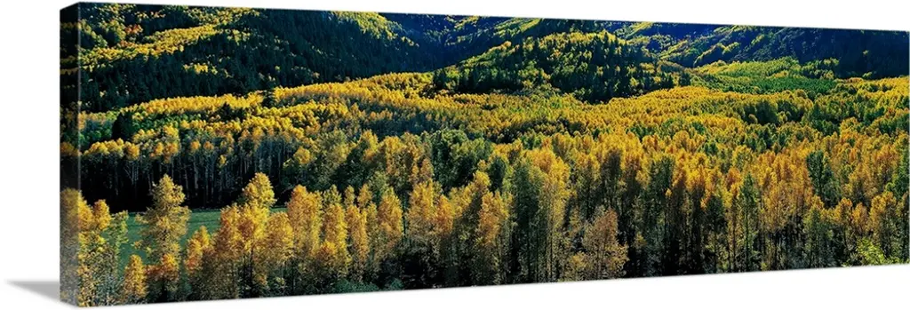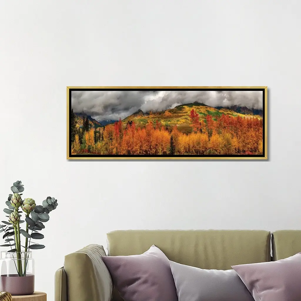 Icanvas "Autumn Scene At Crested Butte, Colorado" By Olena Art Framed Canvas Print - 16x48 - Gold