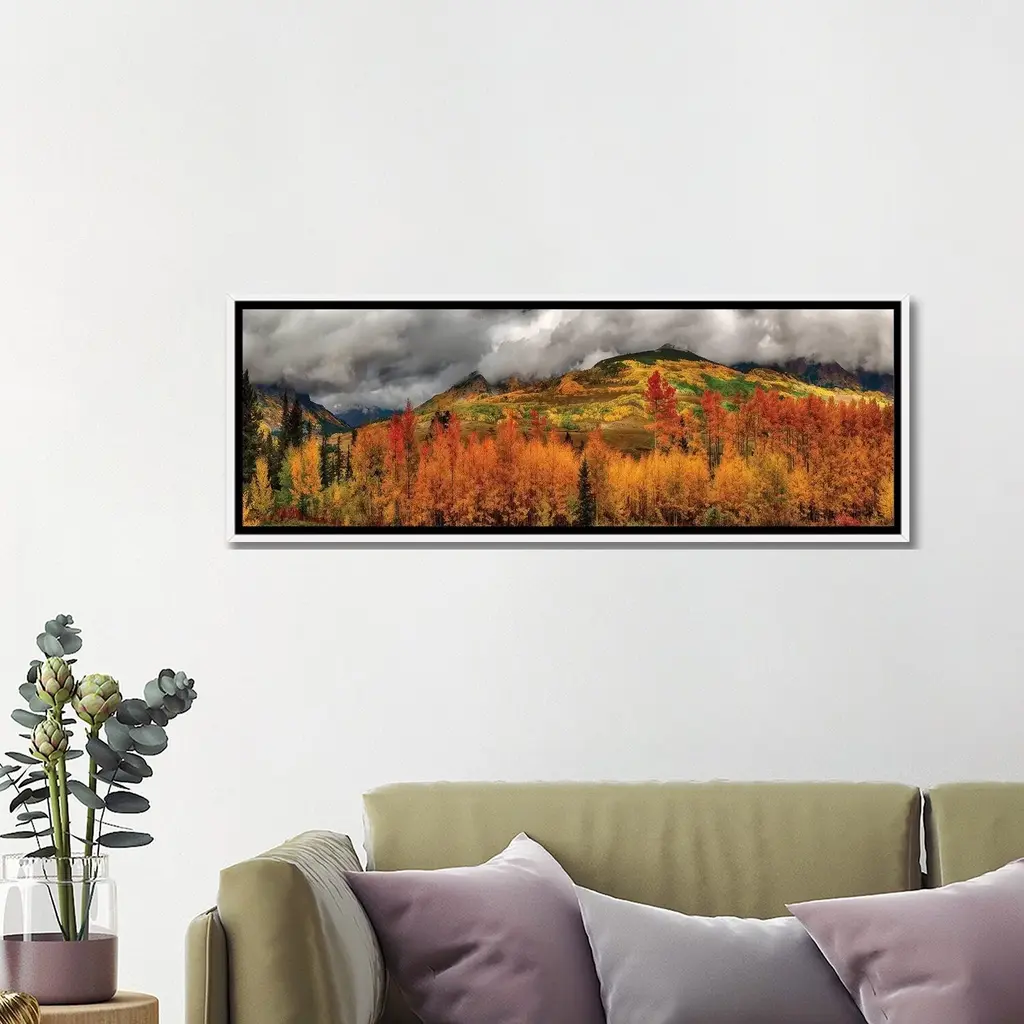 Icanvas "Autumn Scene At Crested Butte, Colorado" By Olena Art Framed Canvas Print - 16x48 - White