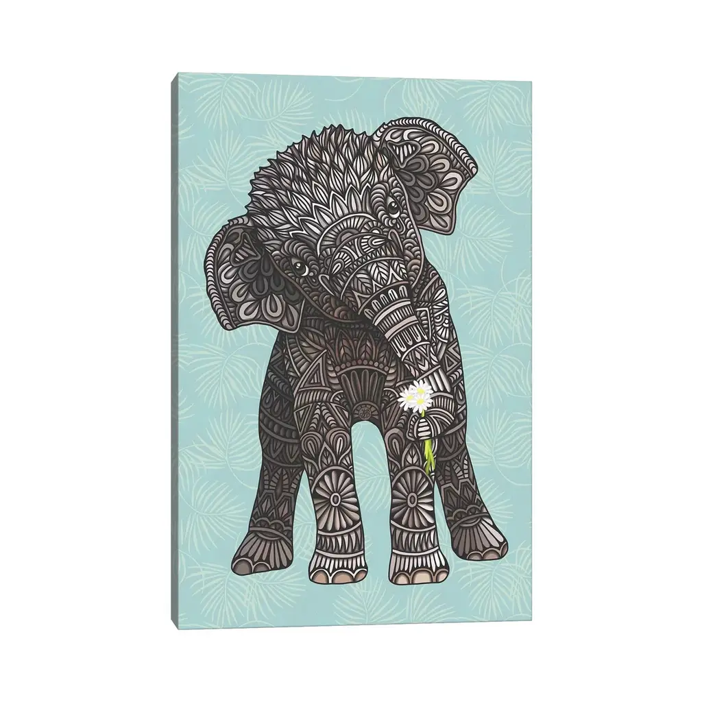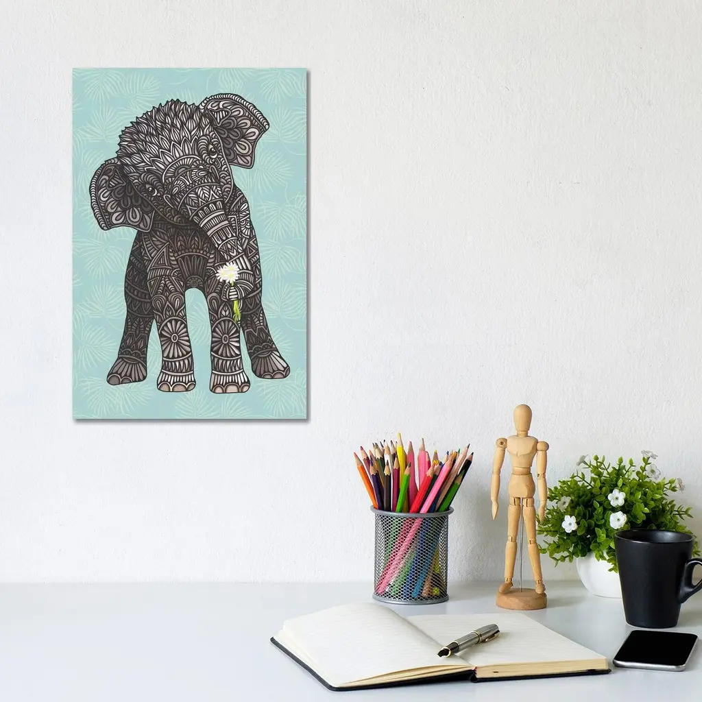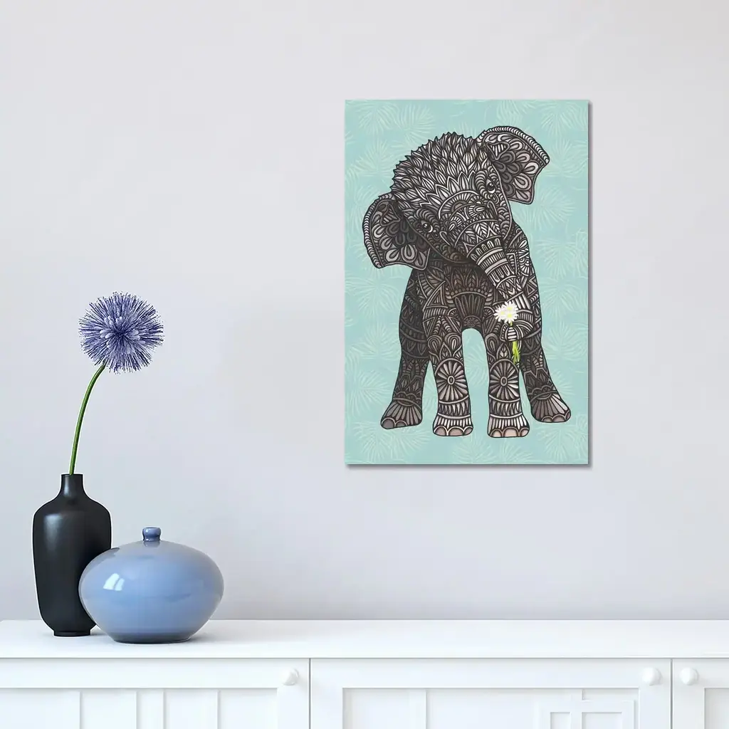 Icanvas "Baby Elephant - Teal" By Angelika Parker Canvas Print - 40x26x1.5
