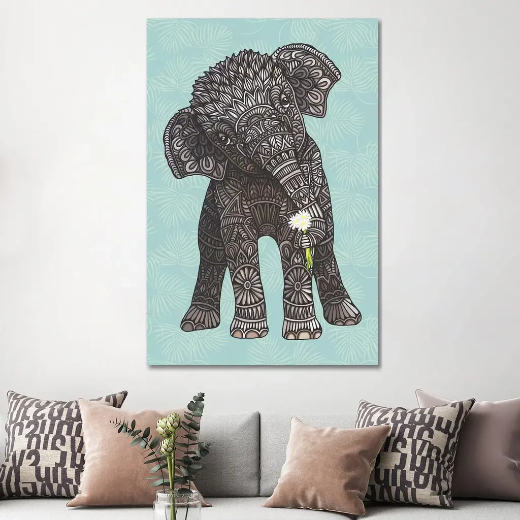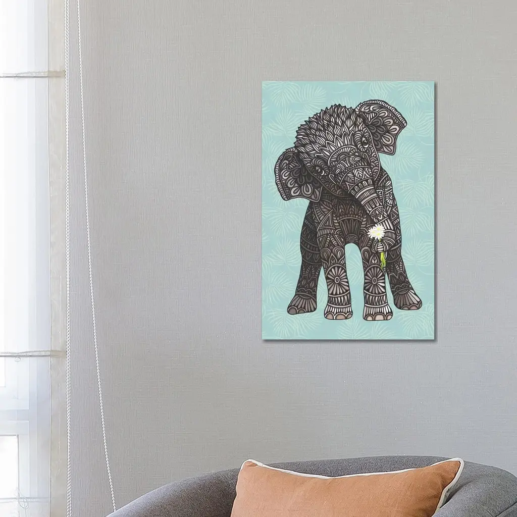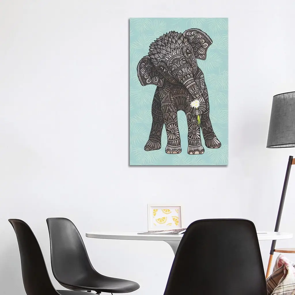Icanvas "Baby Elephant - Teal" By Angelika Parker Canvas Print - 40x26x1.5