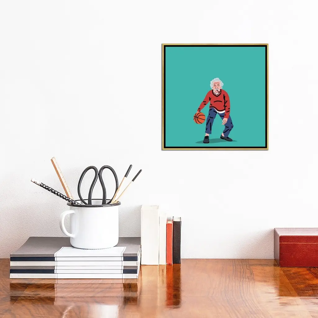Icanvas "Balling Einstein" By Elad Shagrir Framed Canvas Print - Gold - 18x18