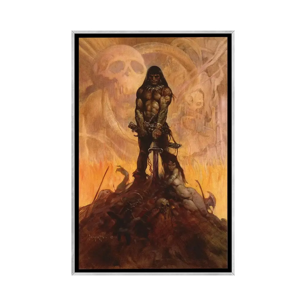 Icanvas "Barbarian" By Frank Frazetta Framed - Charcoal - 48x32