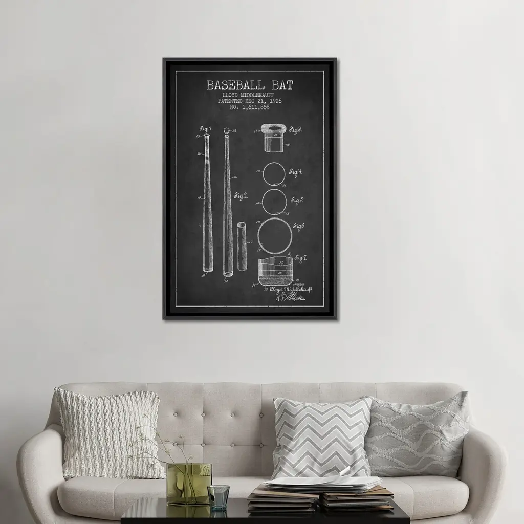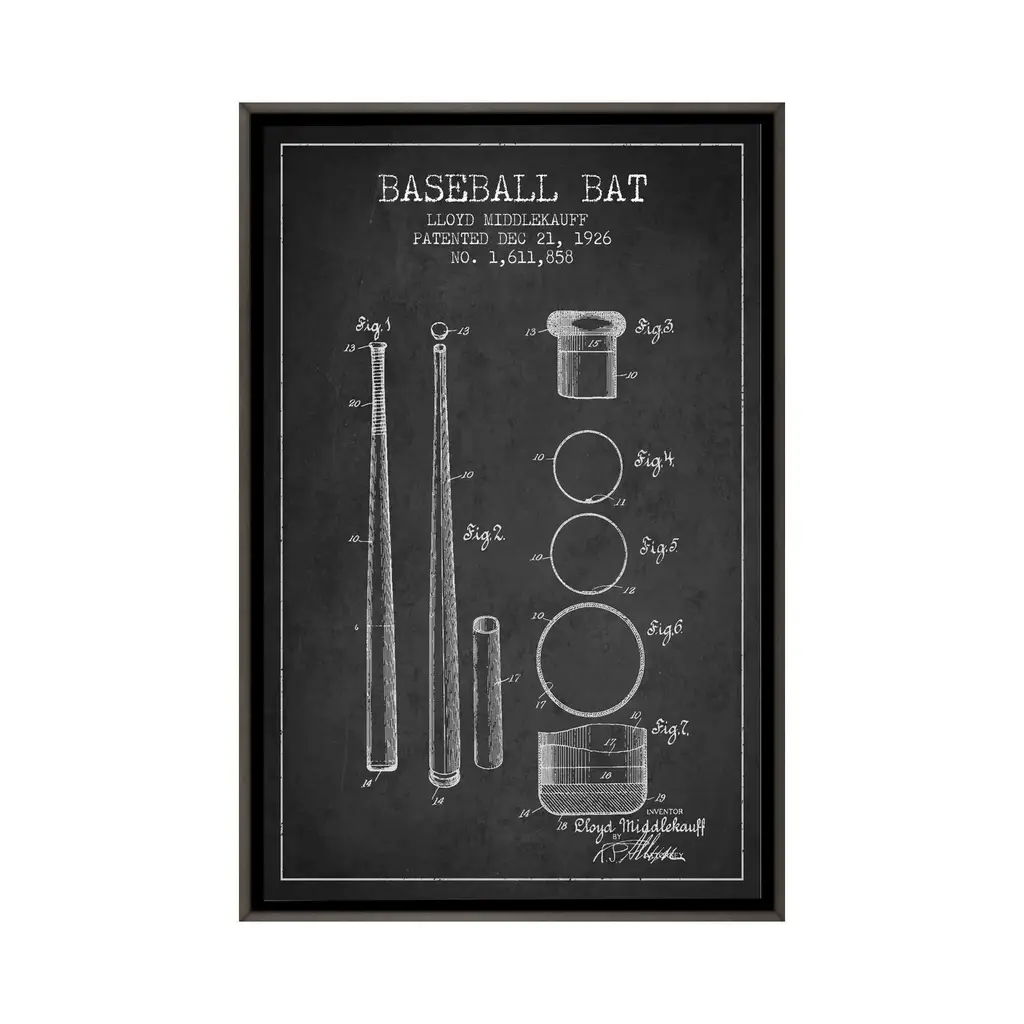 Icanvas "Baseball Bat Charcoal Patent Blueprint" By Aged Pixel Framed - Charcoal - 26x18