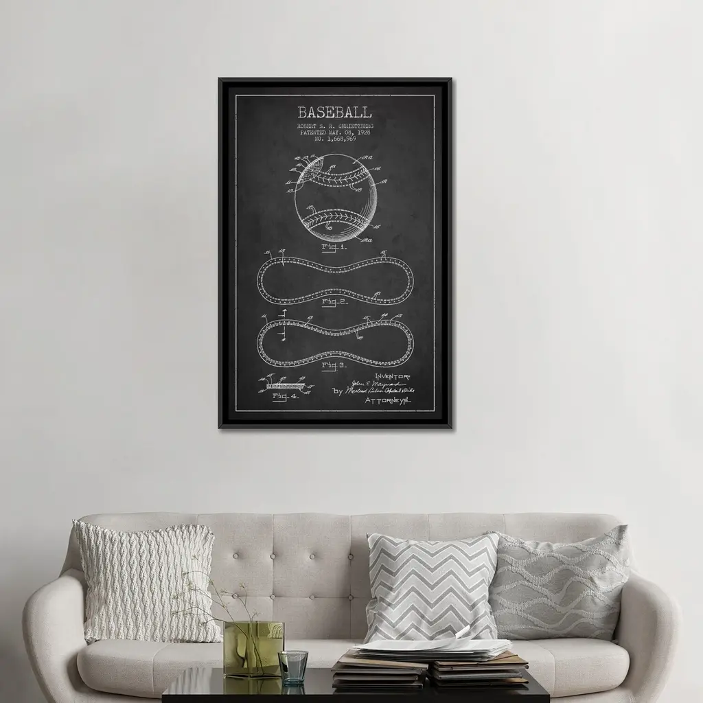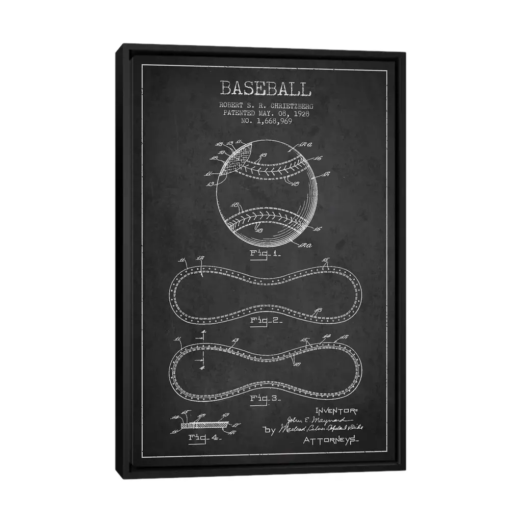 Icanvas "Baseball Charcoal Patent Blueprint" By Aged Pixel Framed Canvas Print - Black - 26x18