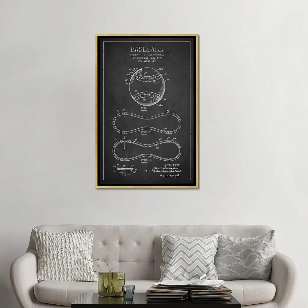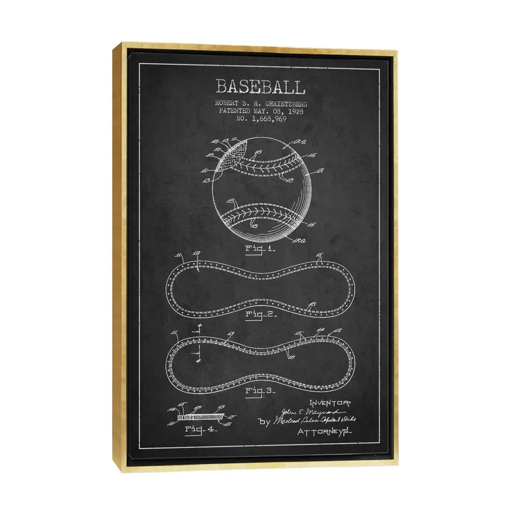 Icanvas "Baseball Charcoal Patent Blueprint" By Aged Pixel Framed Canvas Print - Gold - 48x32