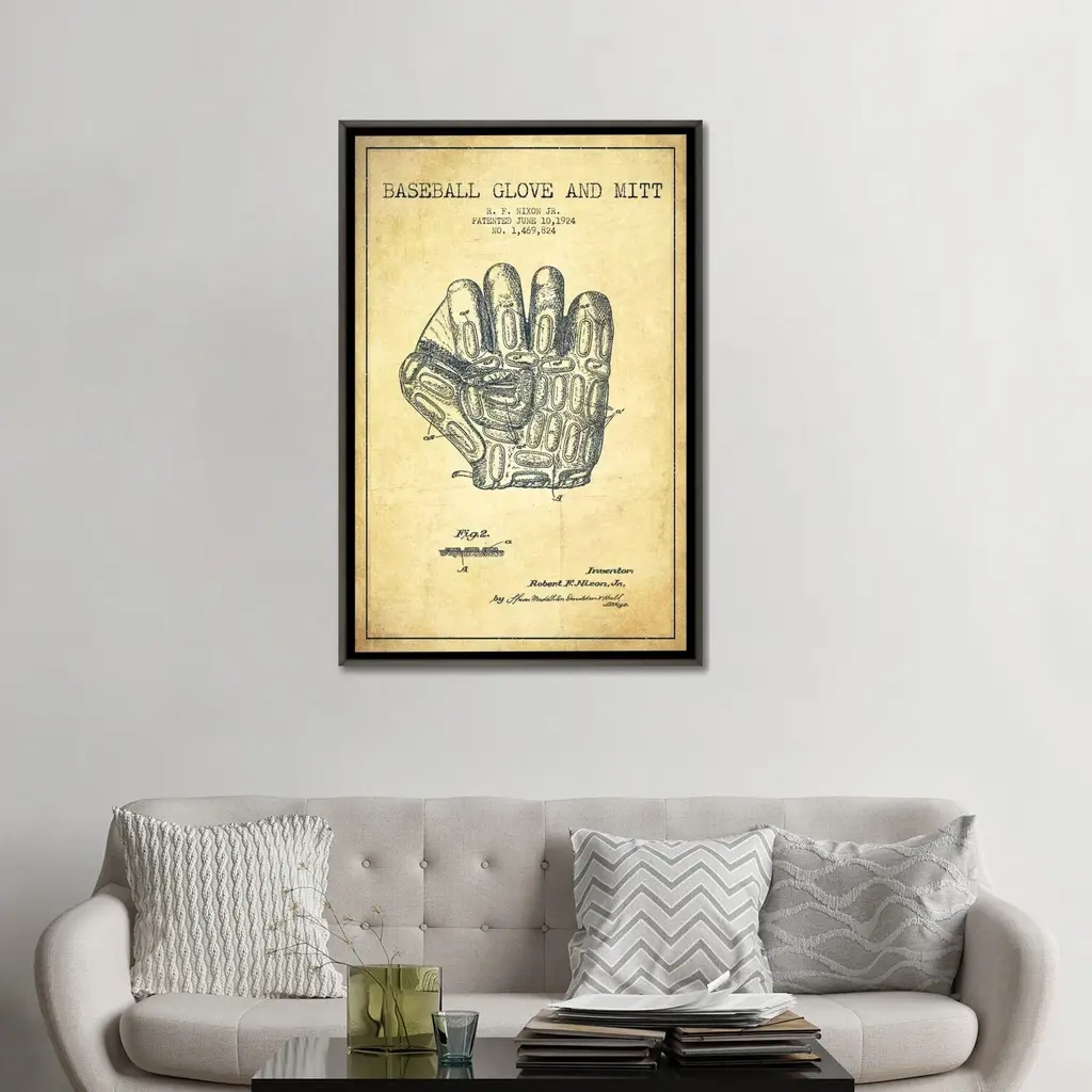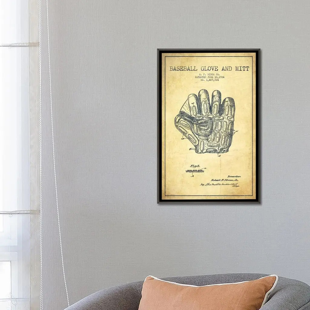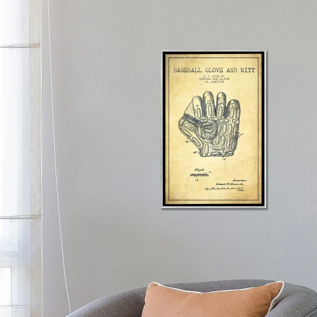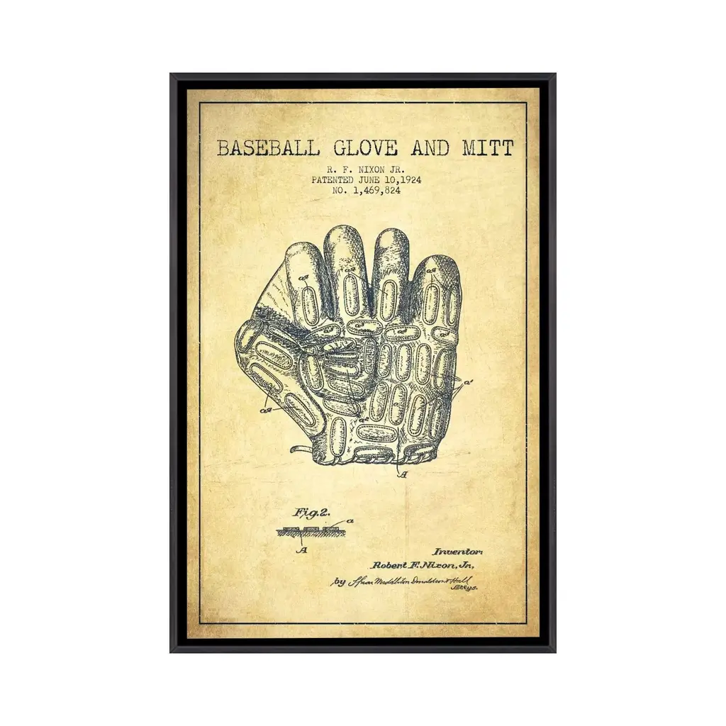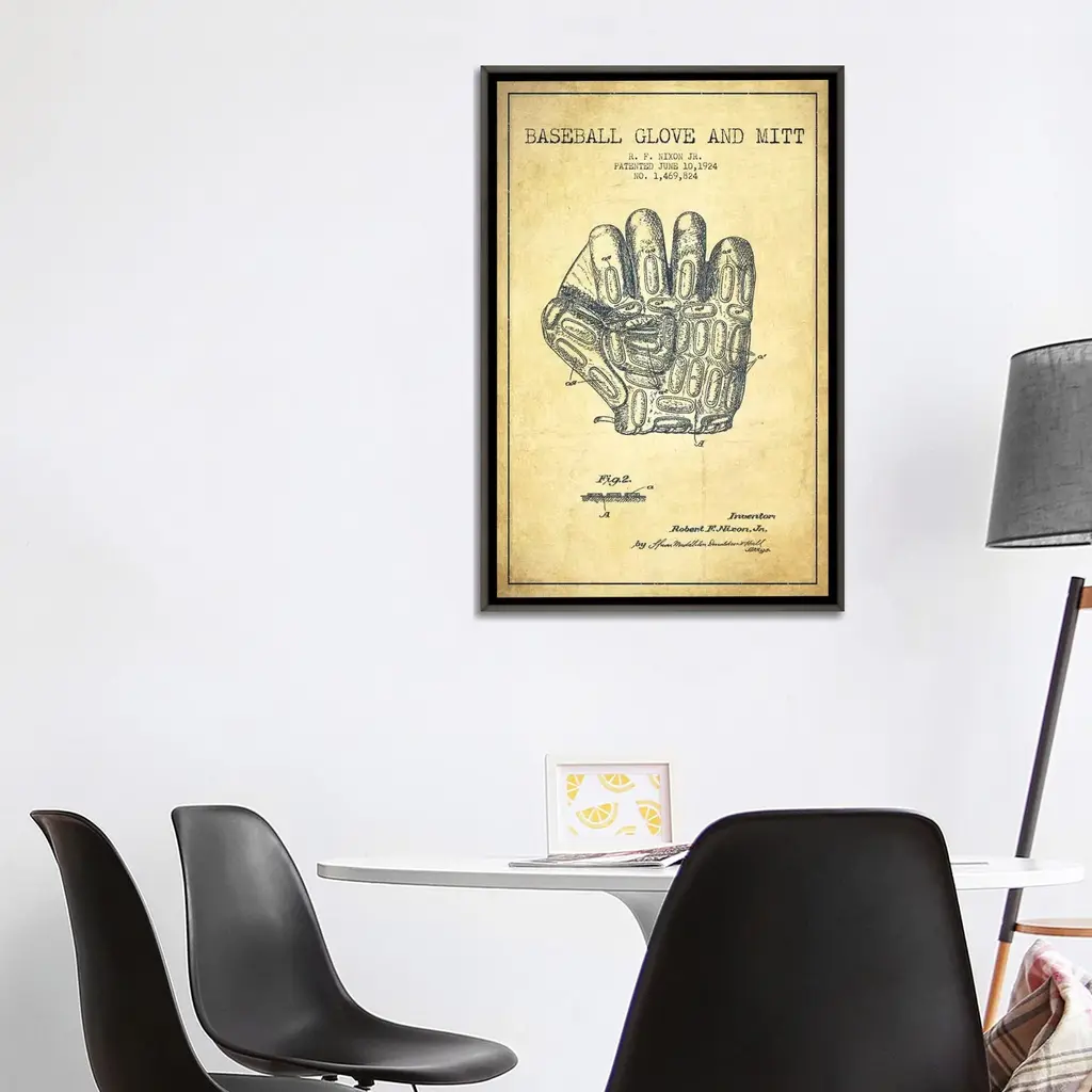Icanvas "Baseball Glove Vintage Patent Blueprint" By Aged Pixel Framed - Charcoal - 26x18