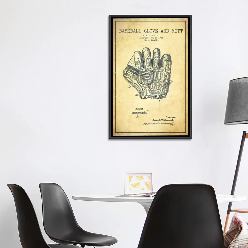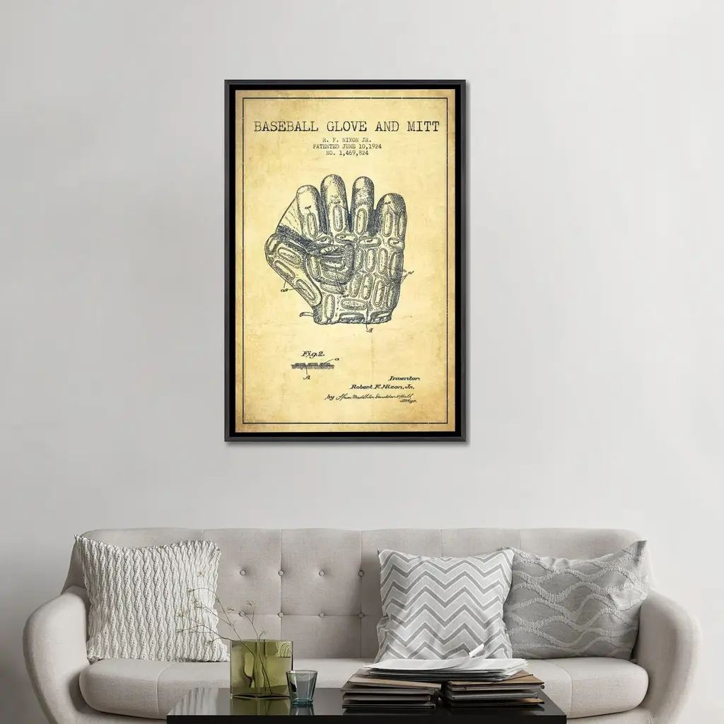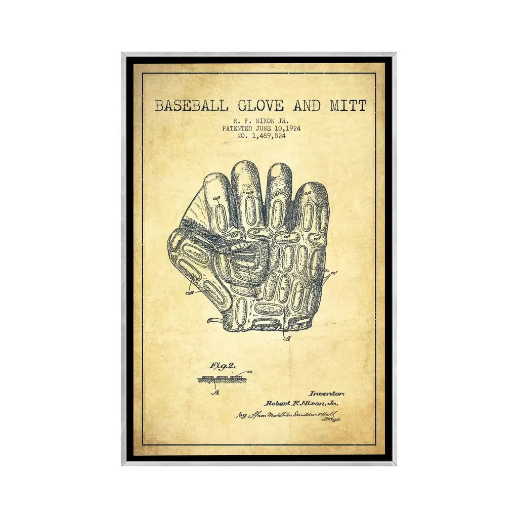 Icanvas "Baseball Glove Vintage Patent Blueprint" By Aged Pixel Framed - Charcoal - 48x32