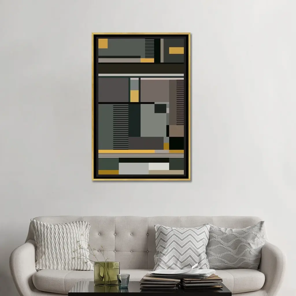 Icanvas "Bauhaus Arte" By The Usual Designers Framed Canvas Print - Gold - 26x18