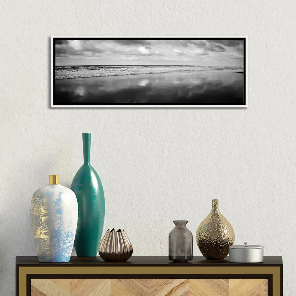 Icanvas "Beach (Black & White)" By Michael Harrison Framed Canvas Print - 12x36 - White