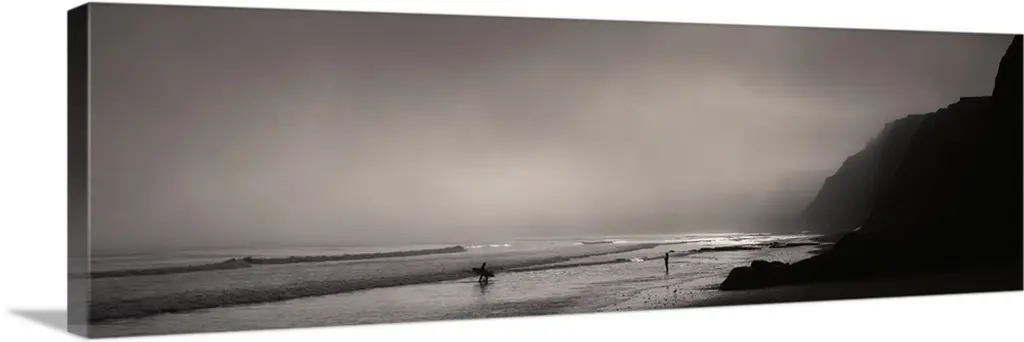 Icanvas "Beach (Black & White)" By Michael Harrison Framed Canvas Print - 16x48 - Black