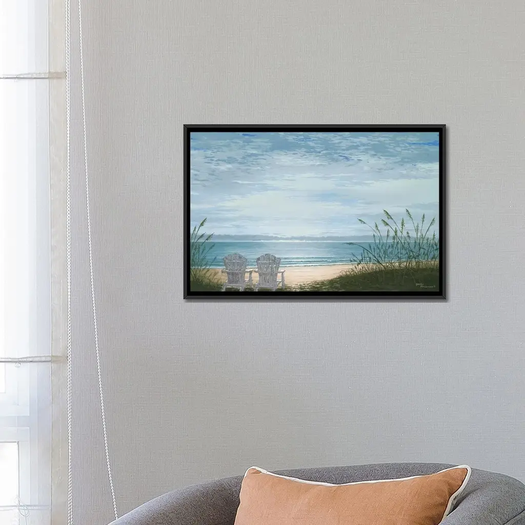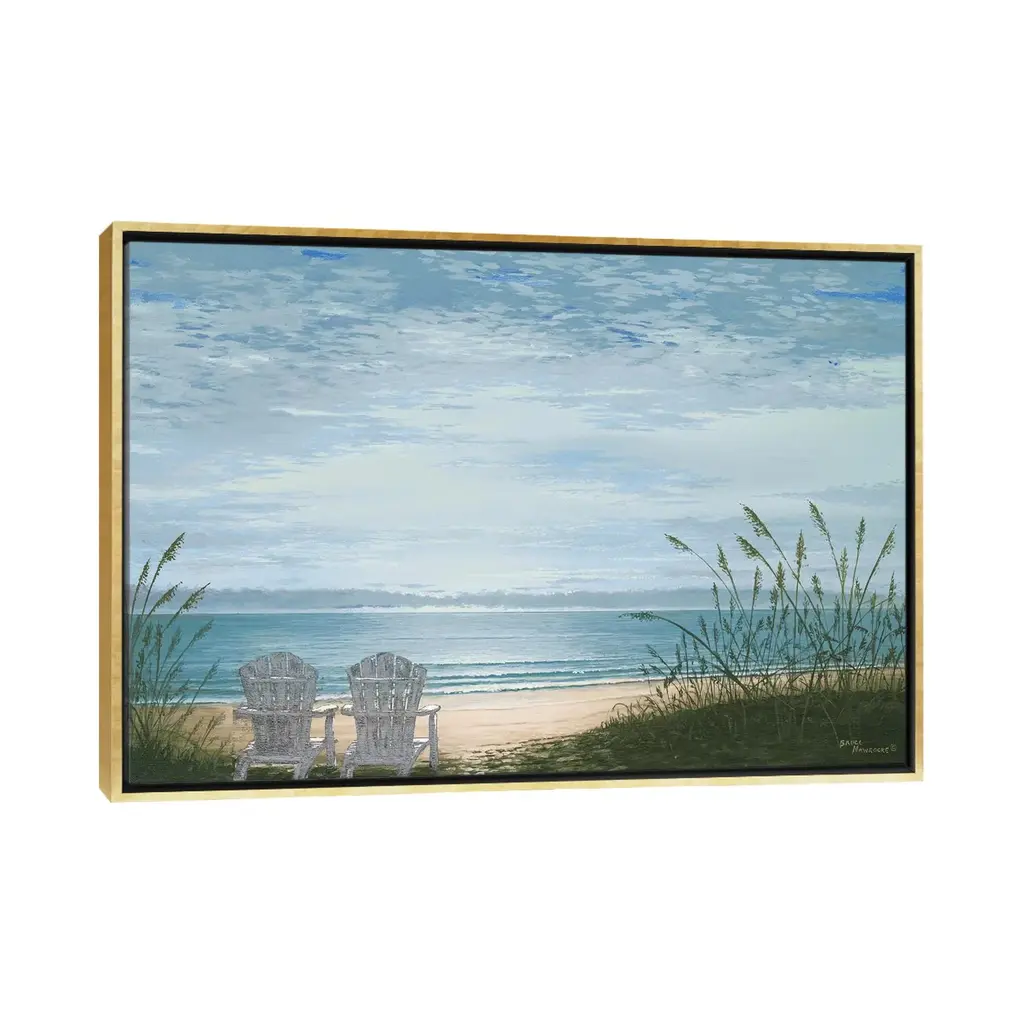 Icanvas "Beach Chairs" By Bruce Nawrocke Framed Canvas Print - Gold - 32x48