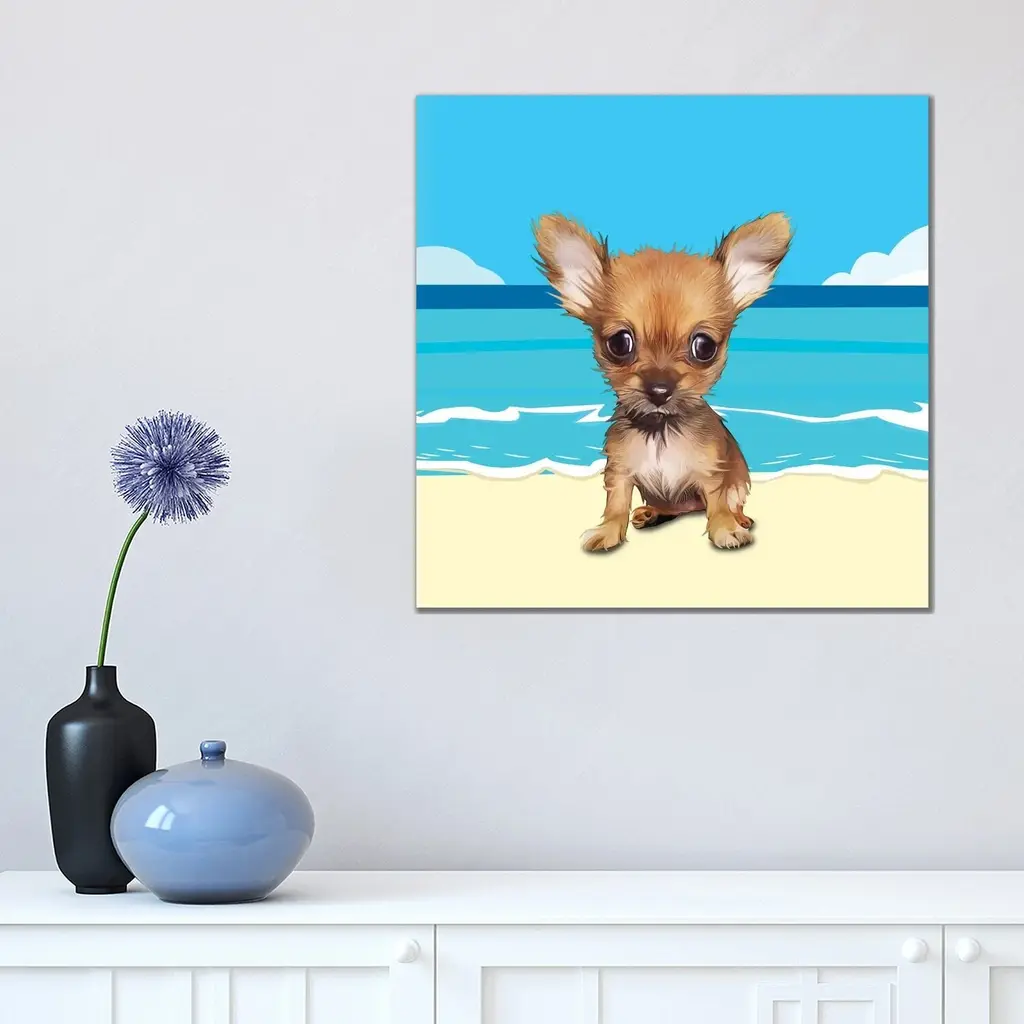 Icanvas "Beach Chihuahua" By Kim Curinga Canvas Print - 12x12x0.75