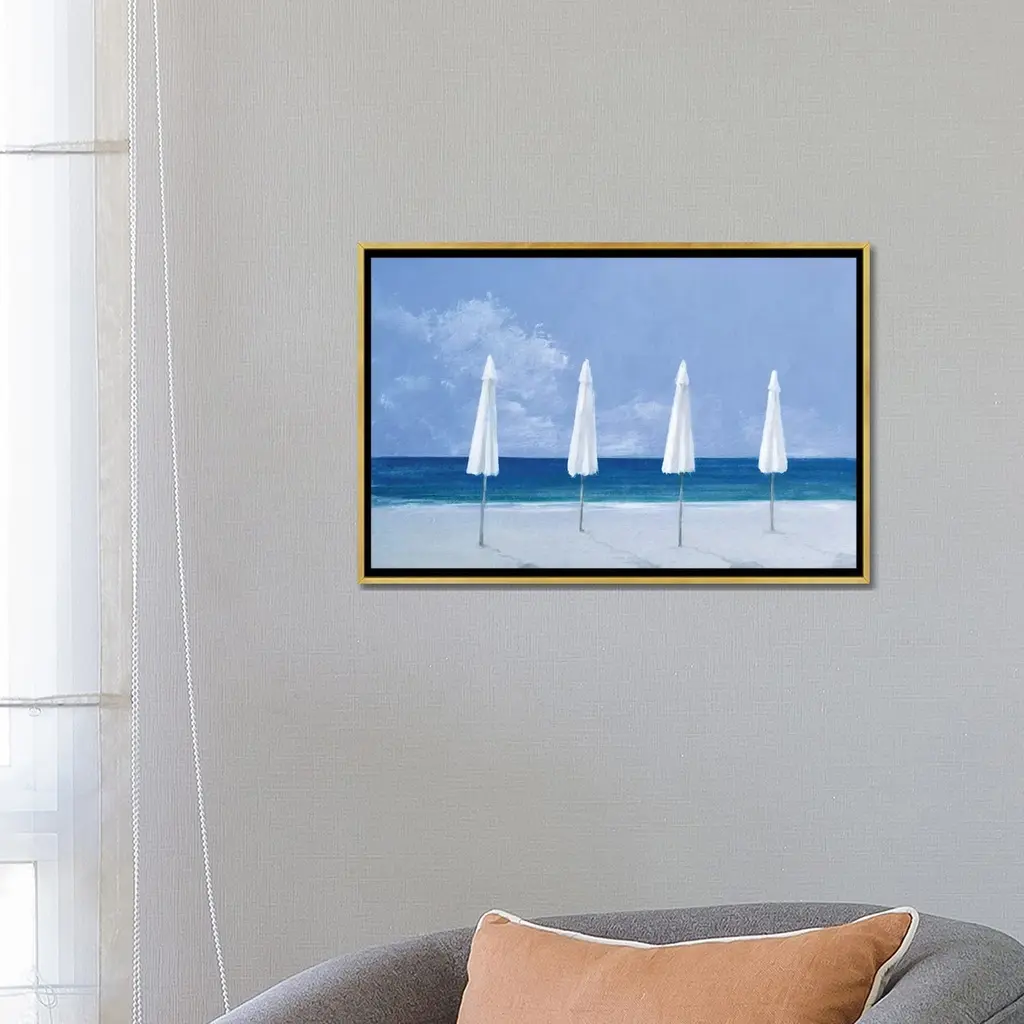 Icanvas "Beach Umbrellas" By Lincoln Seligman Framed Canvas Print - White - 18x26