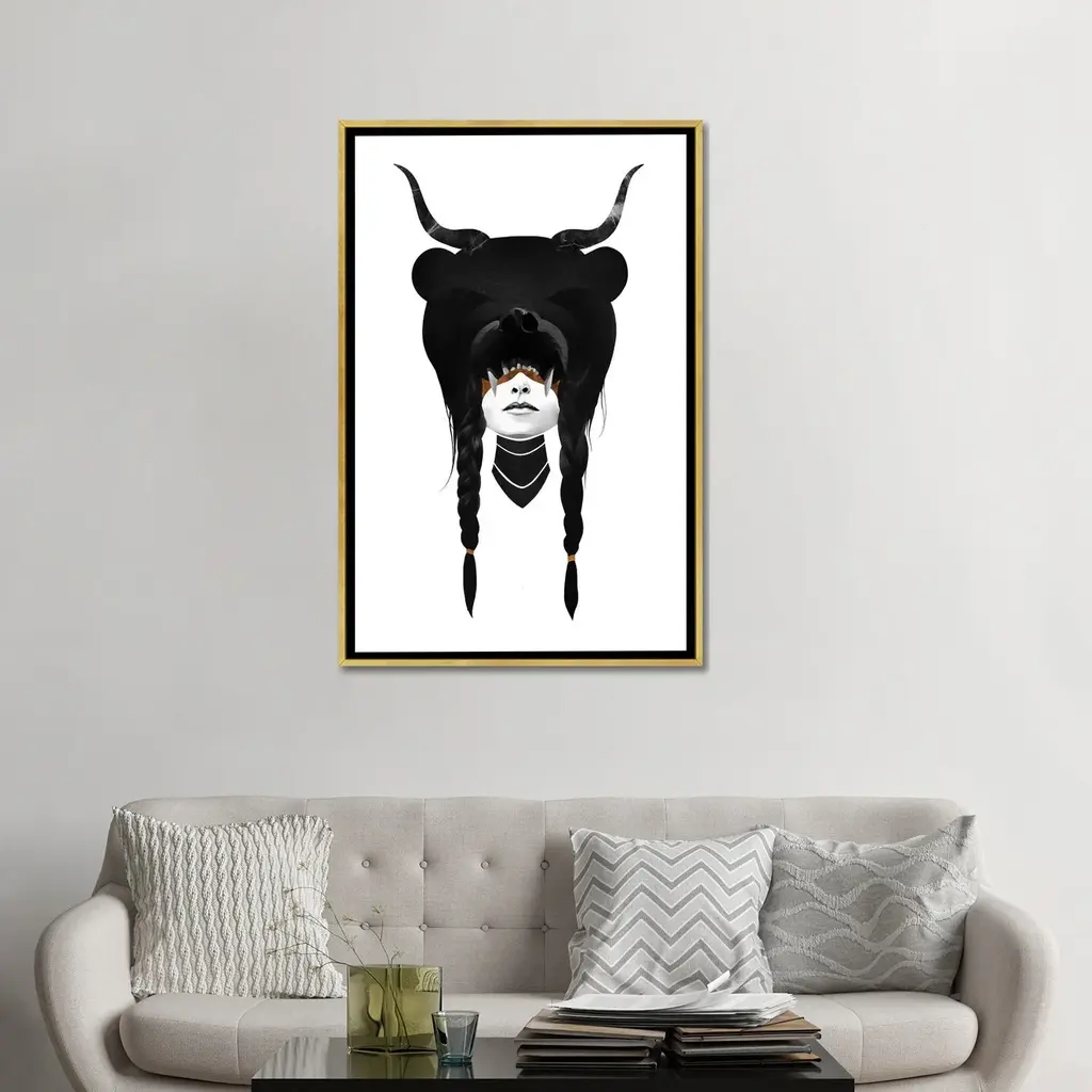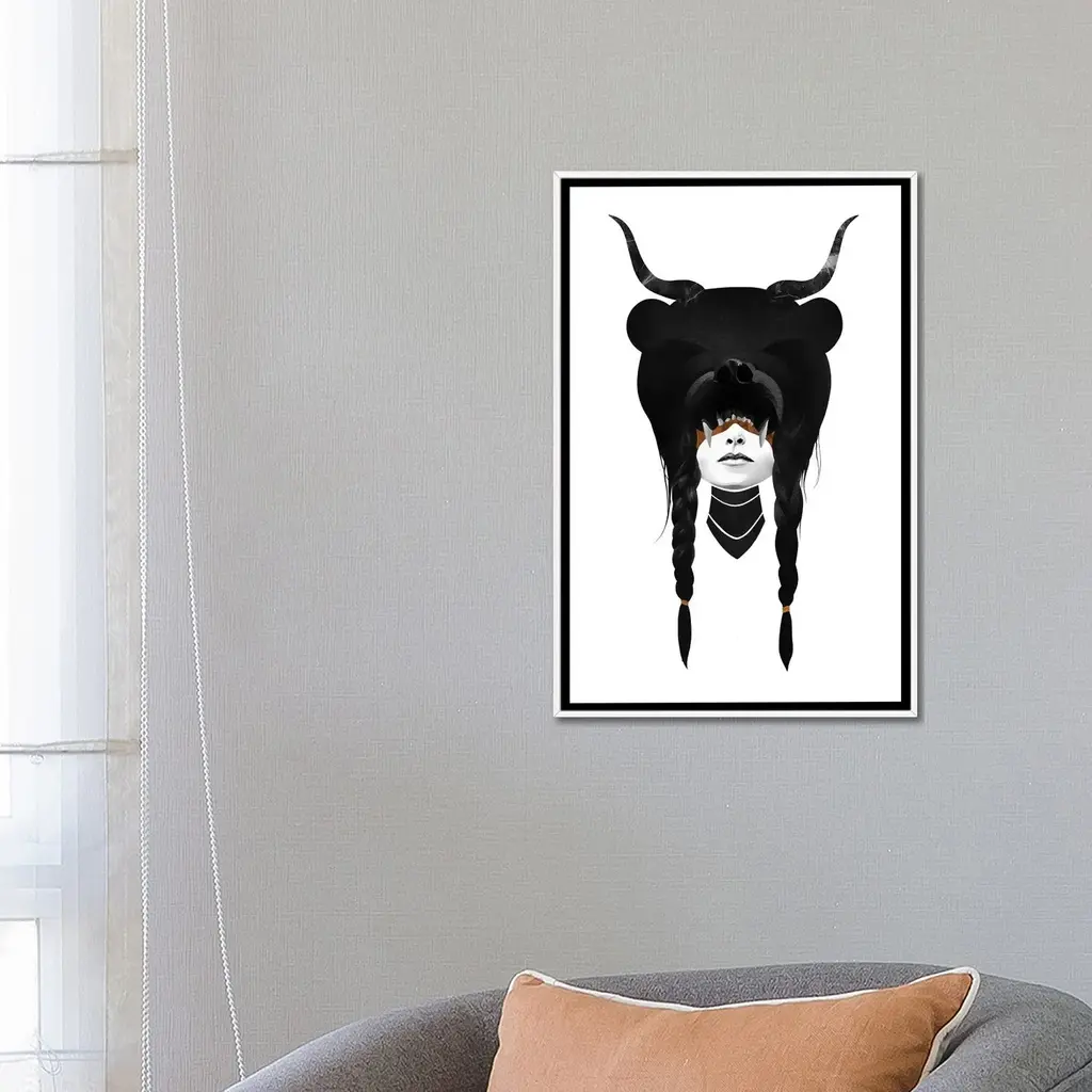 Icanvas "Bear Warrior" By Ruben Ireland Framed - Black - 48x32