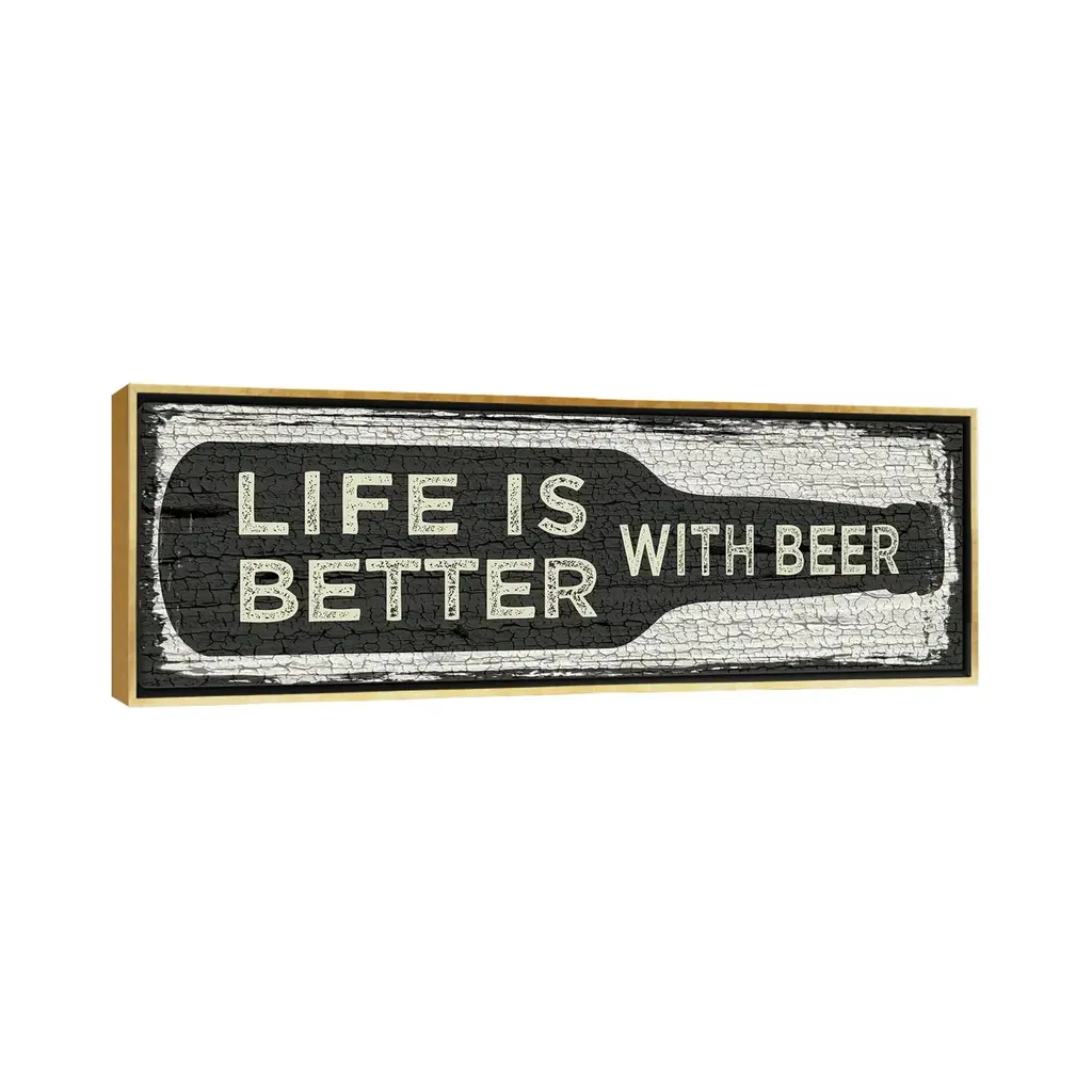 Icanvas "Beer Sign I" By Erin Clark Framed Canvas Print - Gold - 12x36