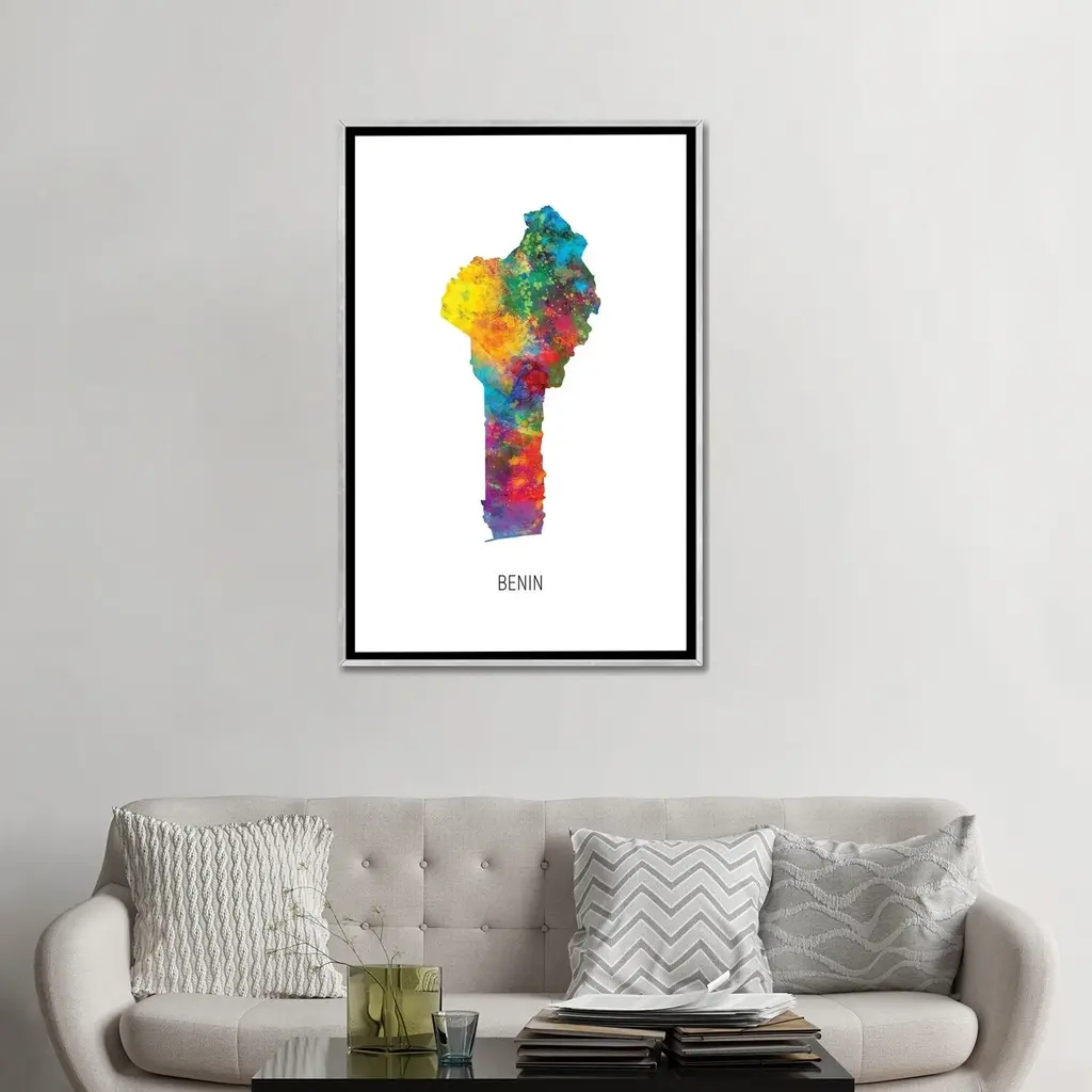 Icanvas "Benin Map" By Michael Tompsett Framed - Charcoal - 48x32