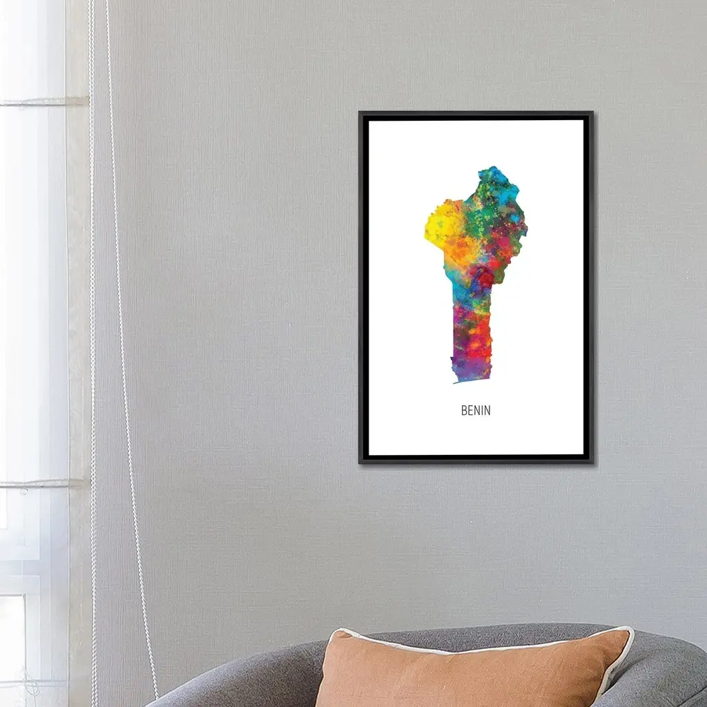 Icanvas "Benin Map" By Michael Tompsett Framed - Ebony - 48x32