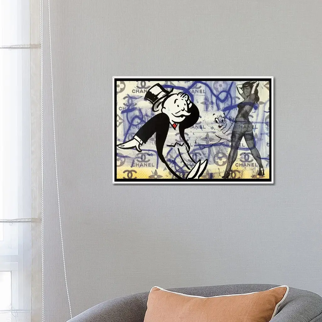 Icanvas "Bettie Page Disaster With Monopoly Man And Casper The Friendly Ghost" By Taylor Smith Framed Canvas Print - Black - 18x26