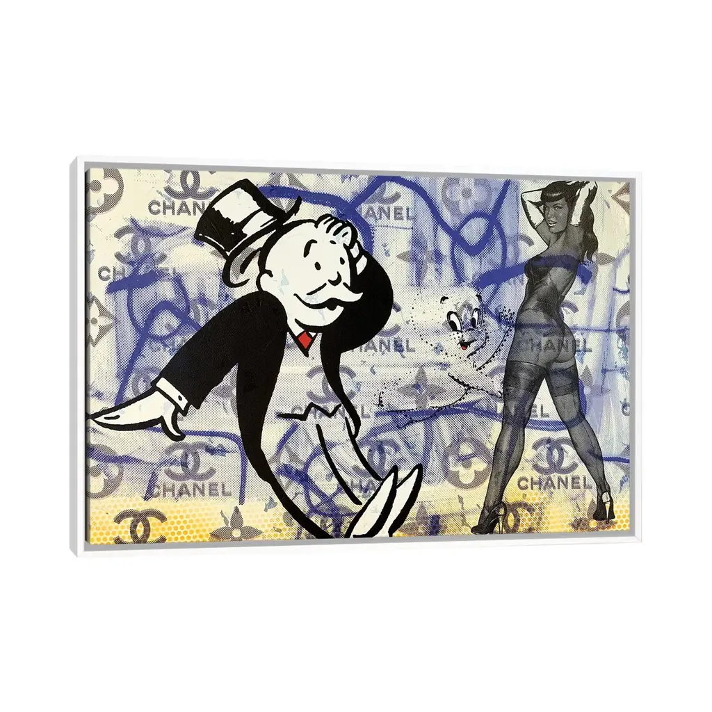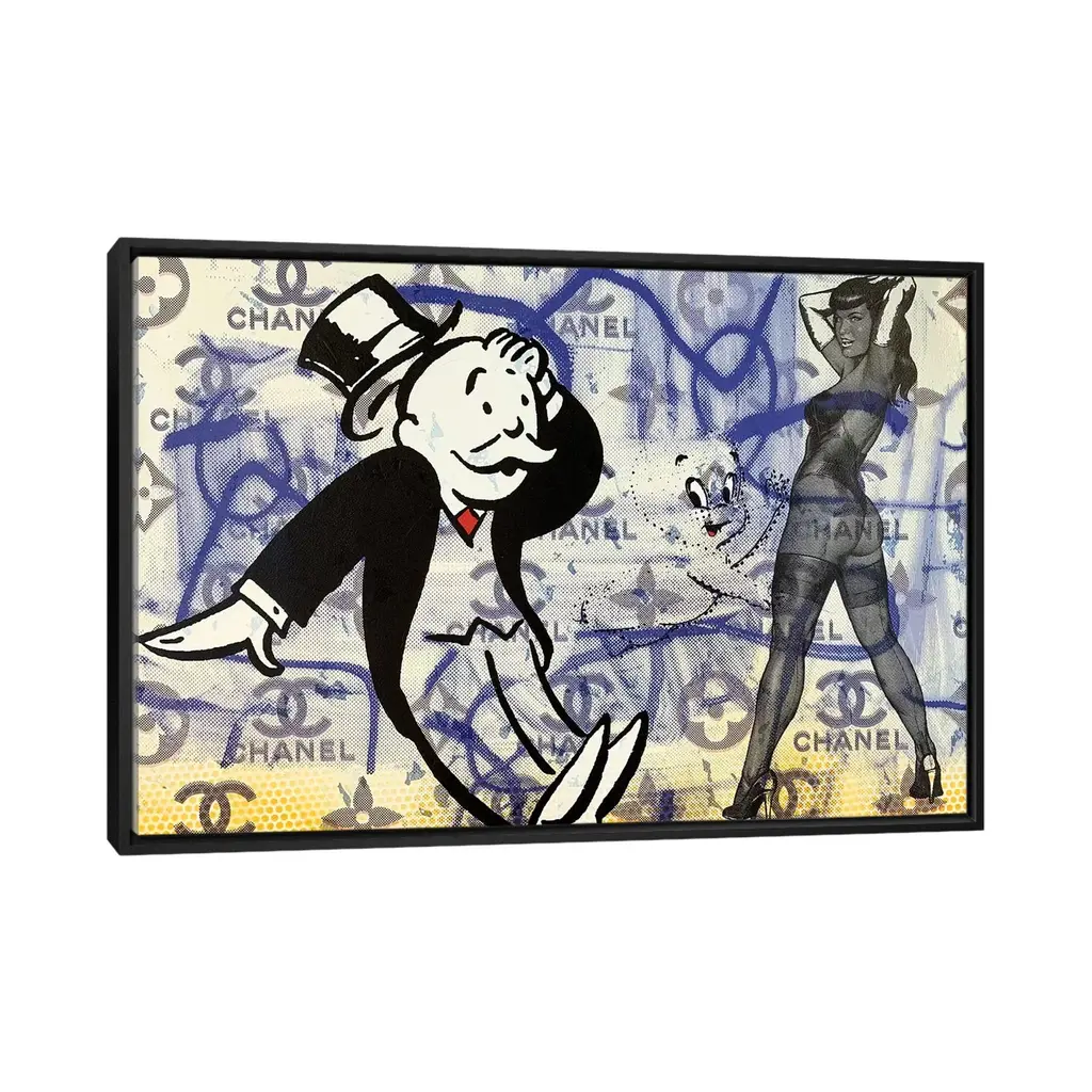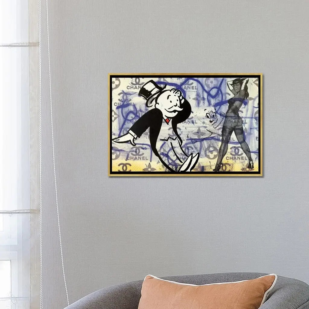 Icanvas "Bettie Page Disaster With Monopoly Man And Casper The Friendly Ghost" By Taylor Smith Framed Canvas Print - Gold - 18x26