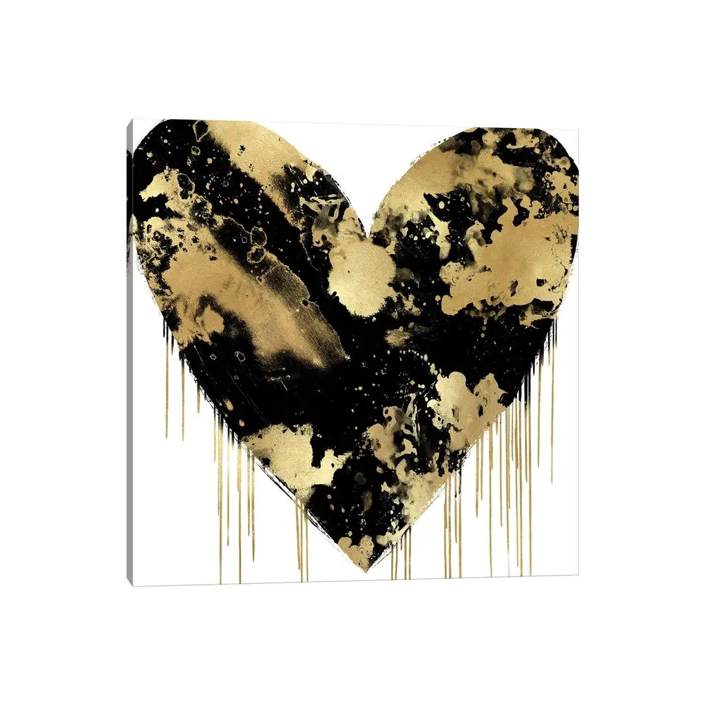 Icanvas "Big Hearted Black And Gold" By Lindsay Rodgers Canvas Print - 12x12x0.75