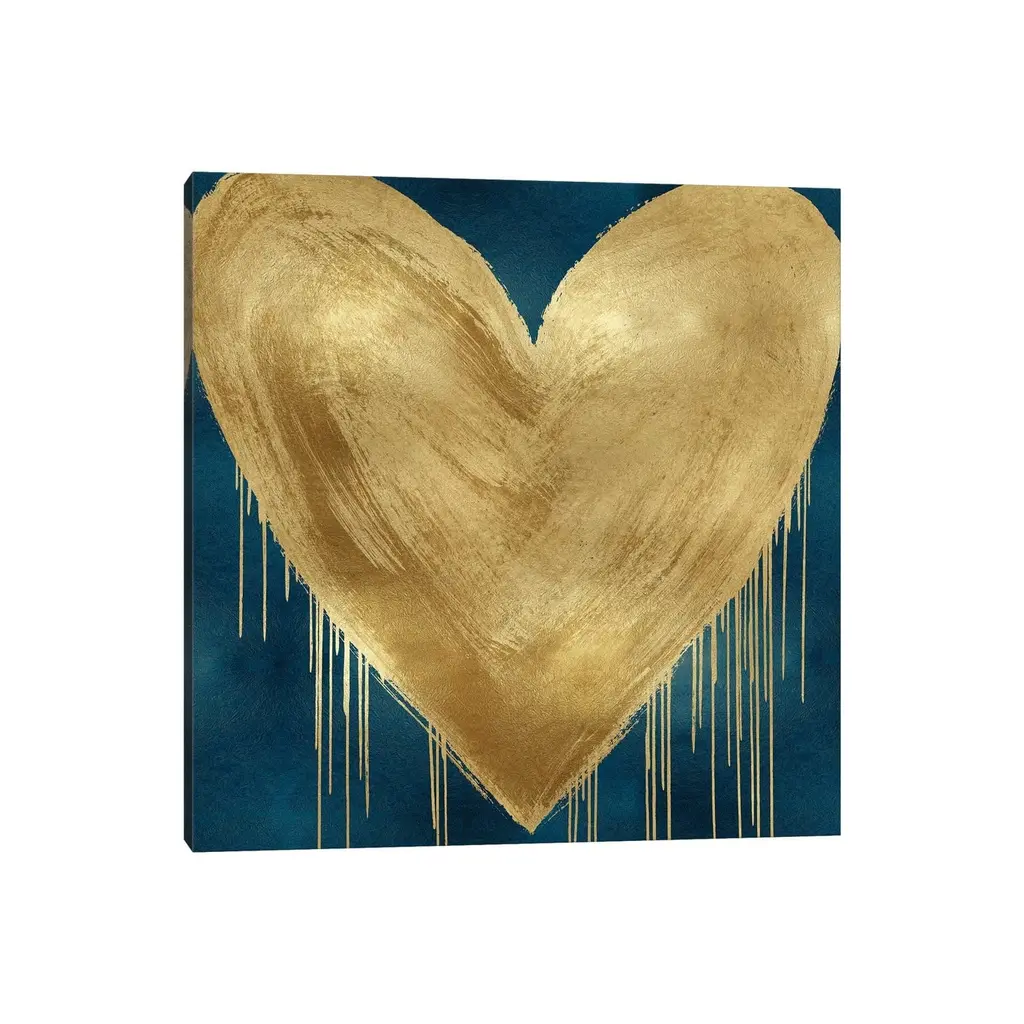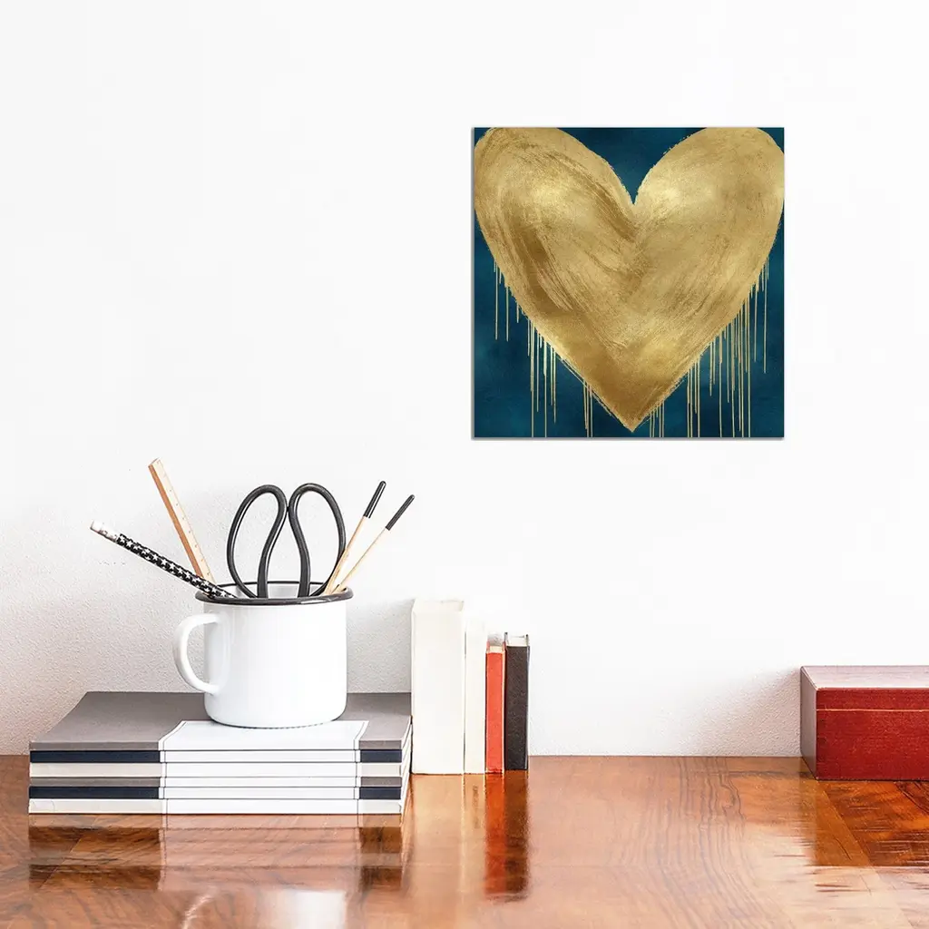 Icanvas "Big Hearted Gold On Teal" By Lindsay Rodgers Canvas Print - 26x26x1.5