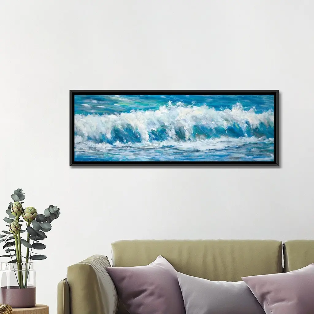 Icanvas "Big Ocean Waves" By Julie Derice Framed Canvas Print - 16x48 - Black