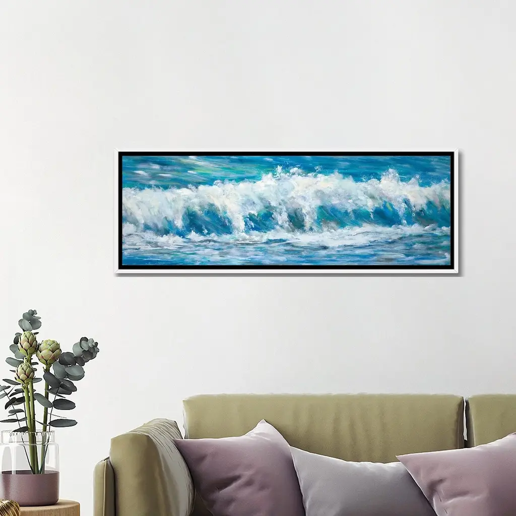 Icanvas "Big Ocean Waves" By Julie Derice Framed Canvas Print - 16x48 - White