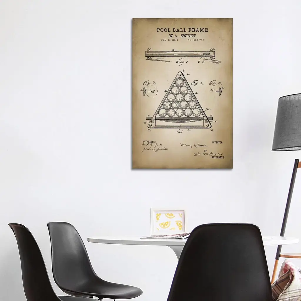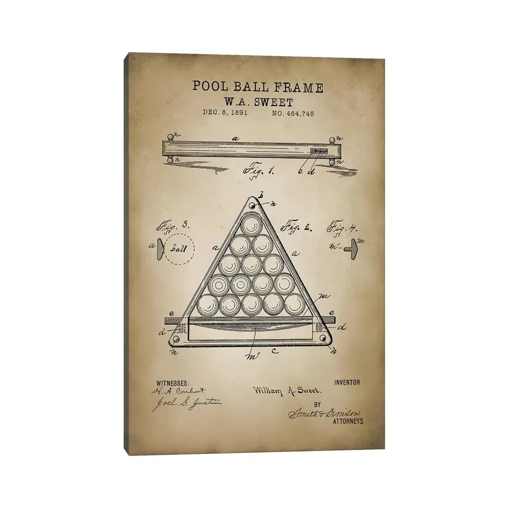 Icanvas "Billiard Iii" By Patentprintstore Canvas Print - 18x12x1.5